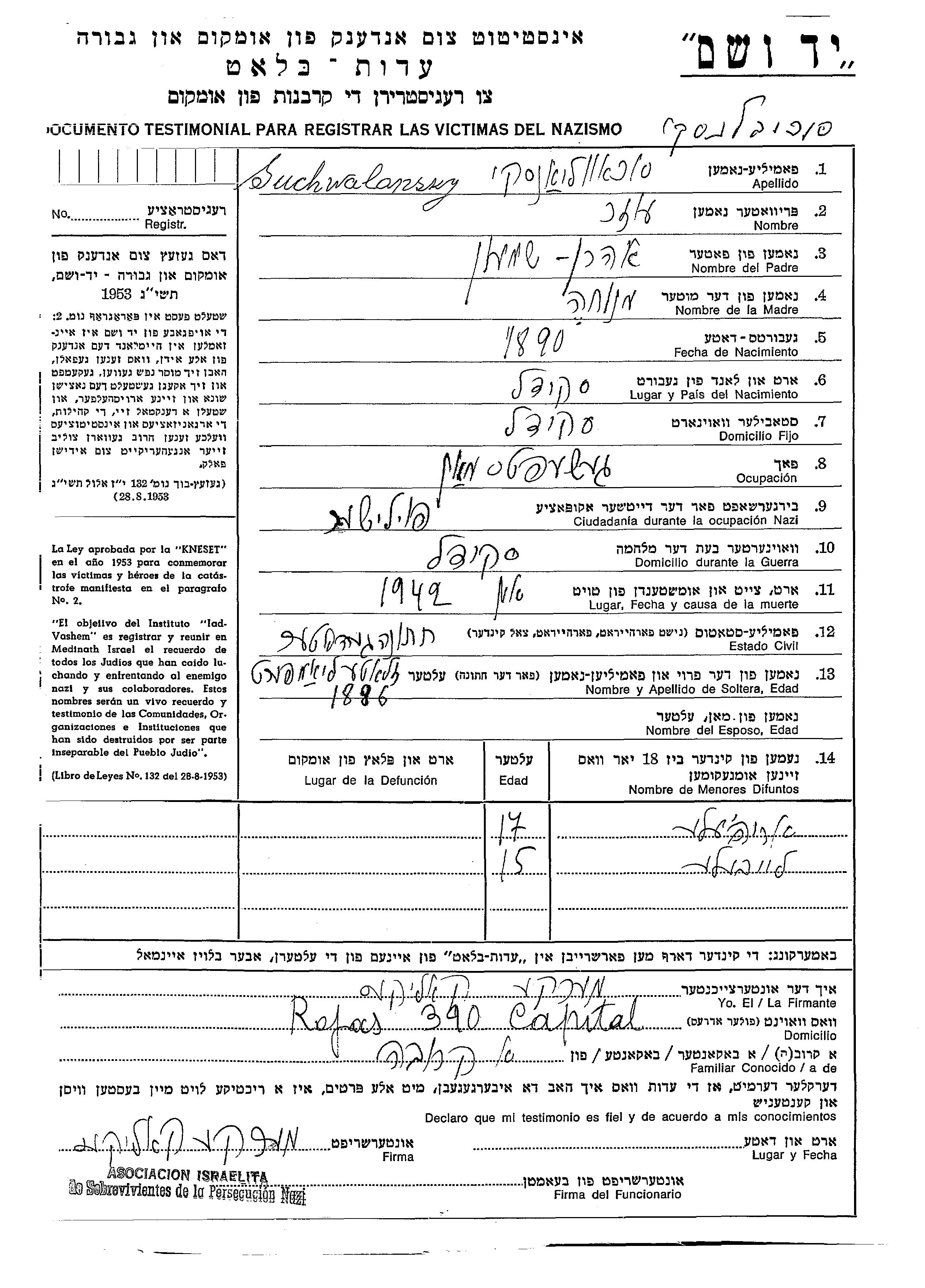 Suchwalansky | Leibele | Skidel, Pologne | Feuille de témoignage |