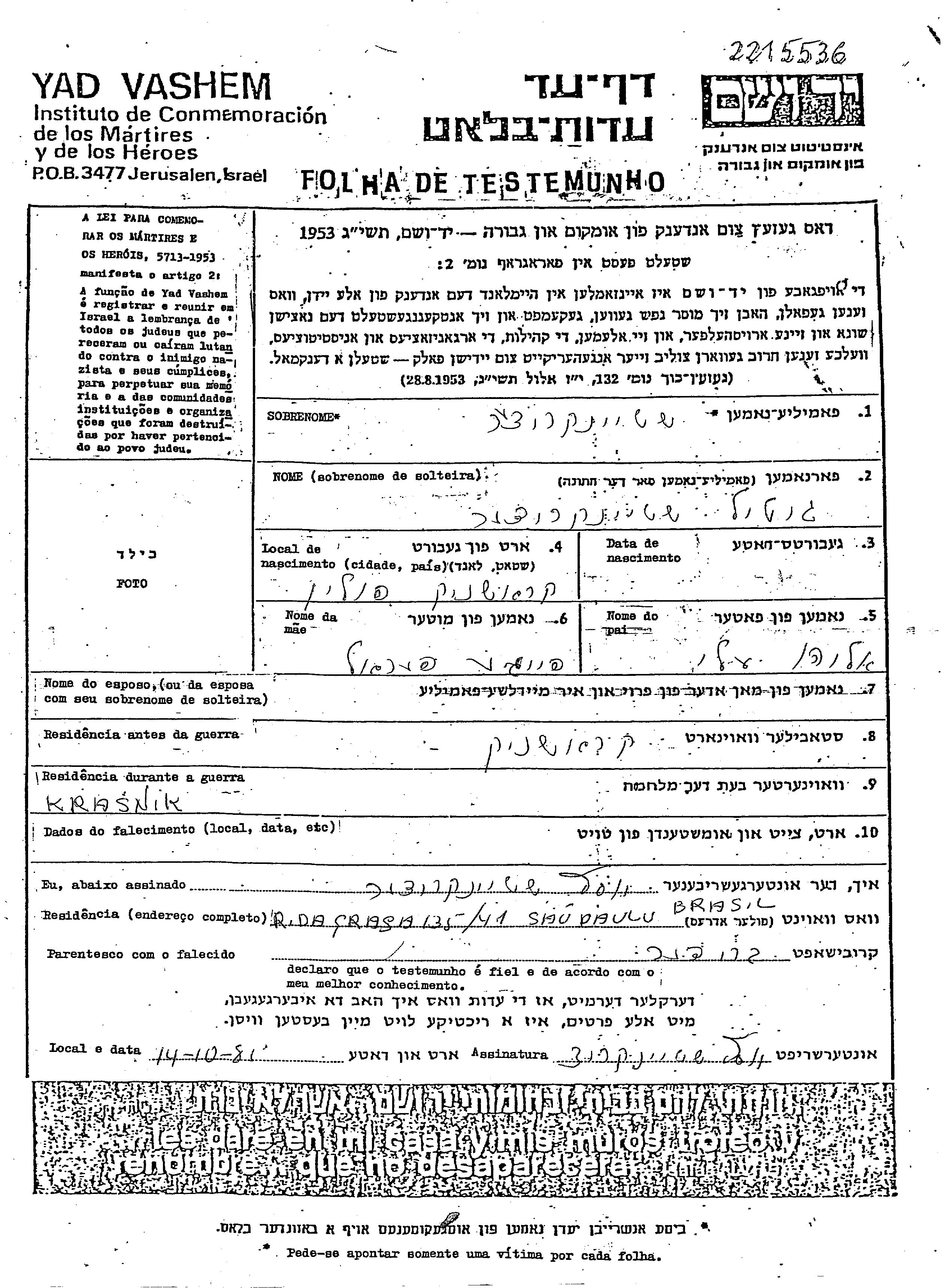 Shteinkritzer | Gitel | 1918 | Krasznik, Pologne | Feuille de témoignage |