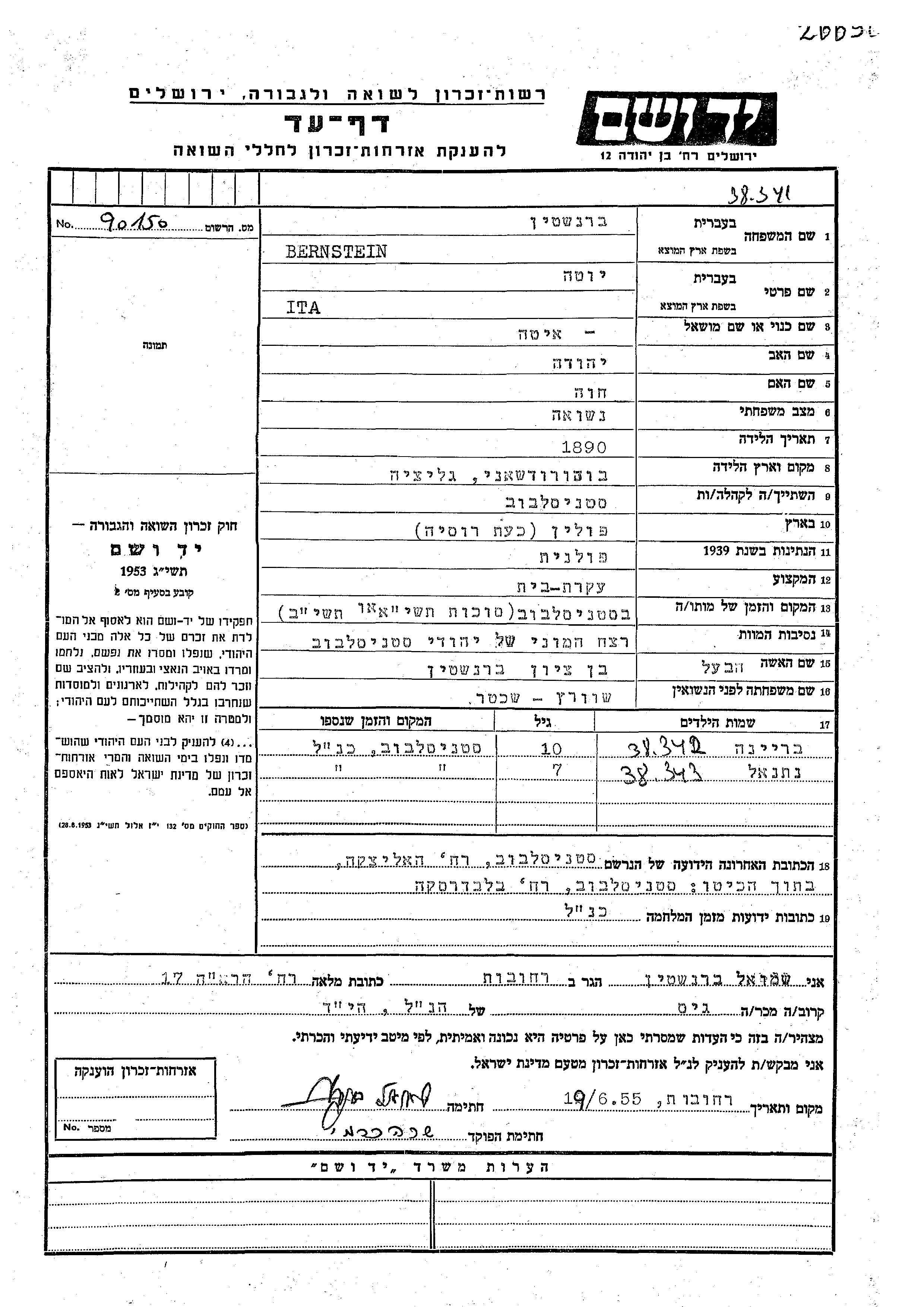 Bernstein Breina Stanislav, Pologne Feuille de témoignage