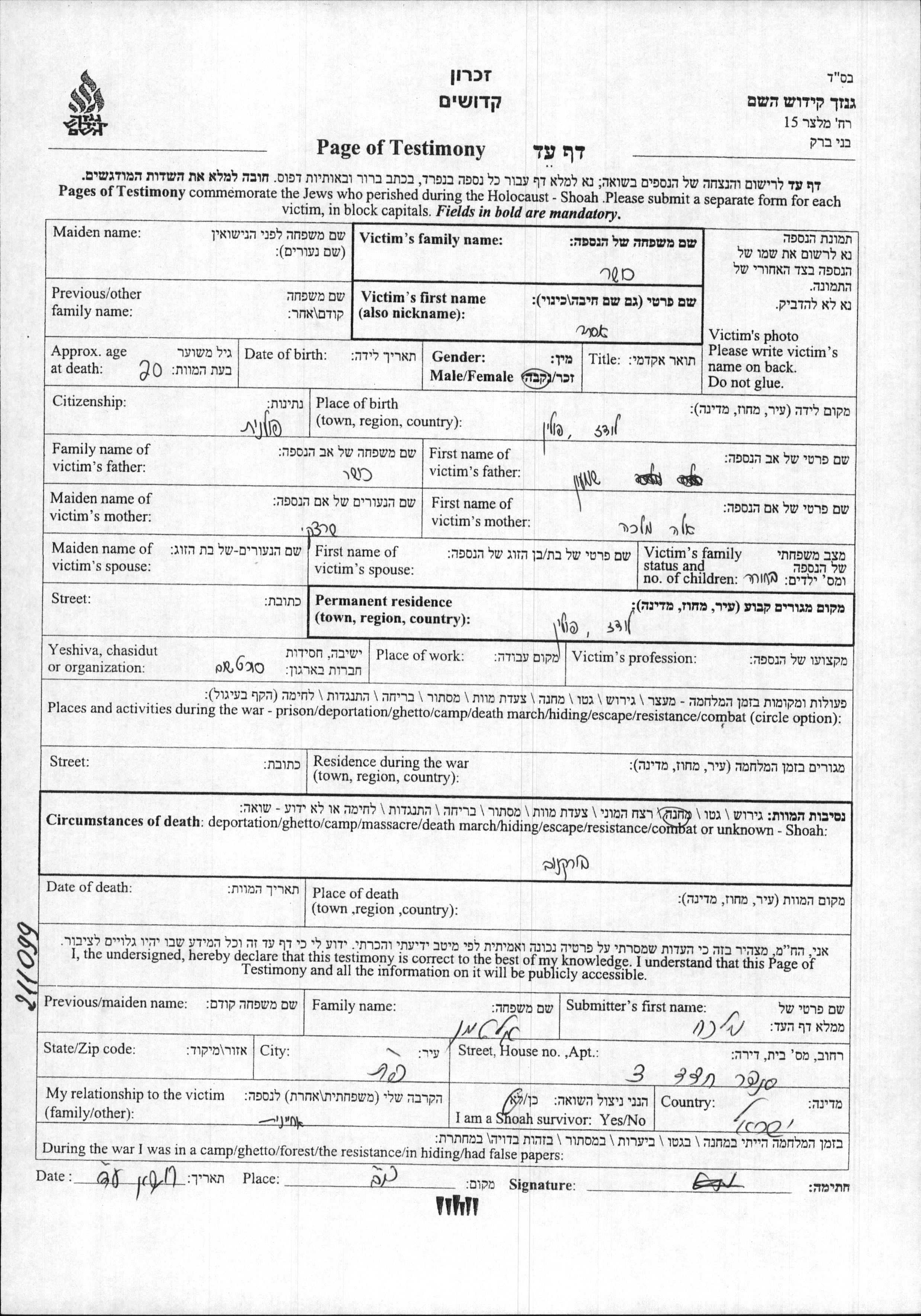 Yad Vashem - Pages of Testimony Names Memorial Collection