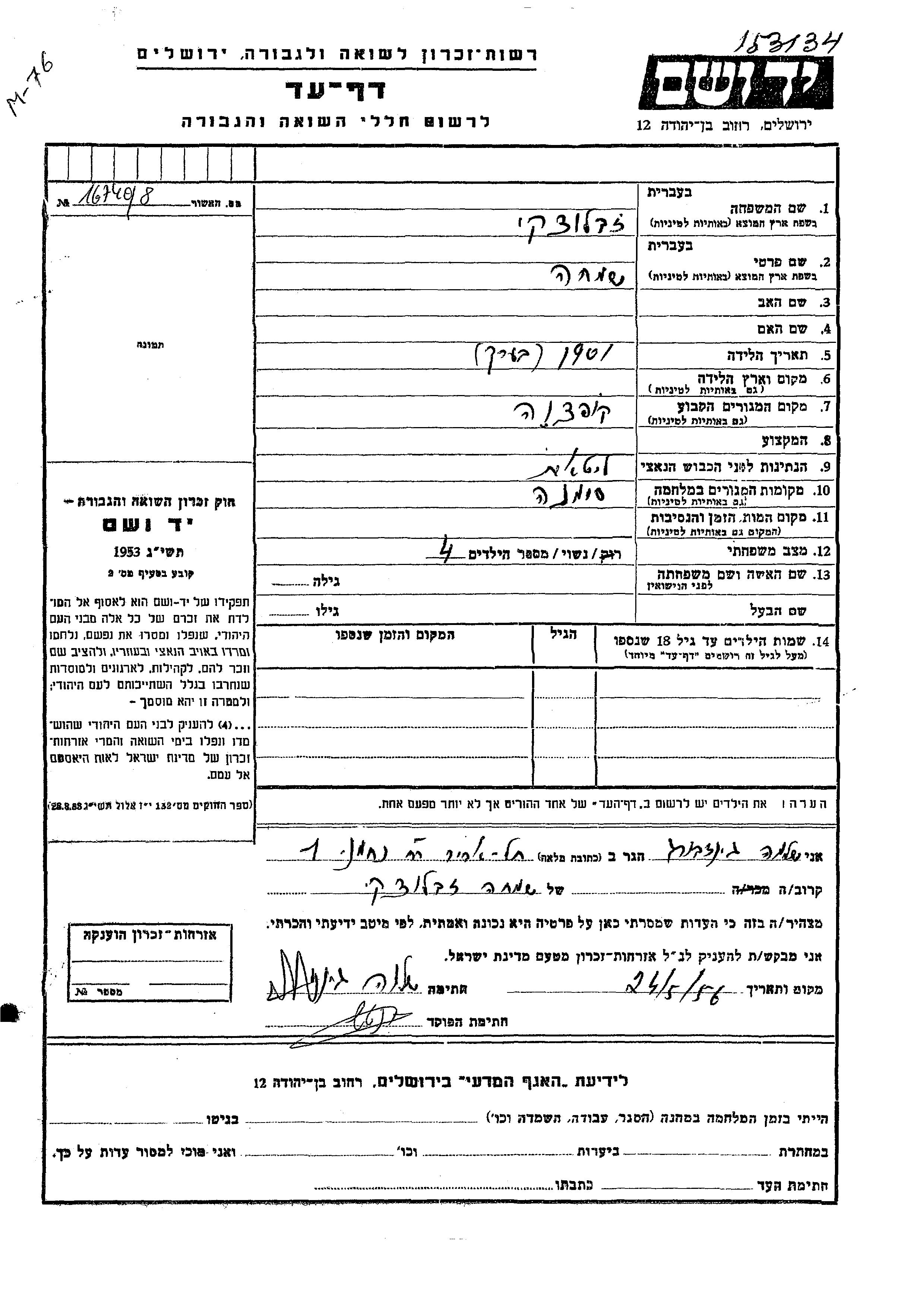 Yad Vashem - Pages of Testimony Names Memorial Collection