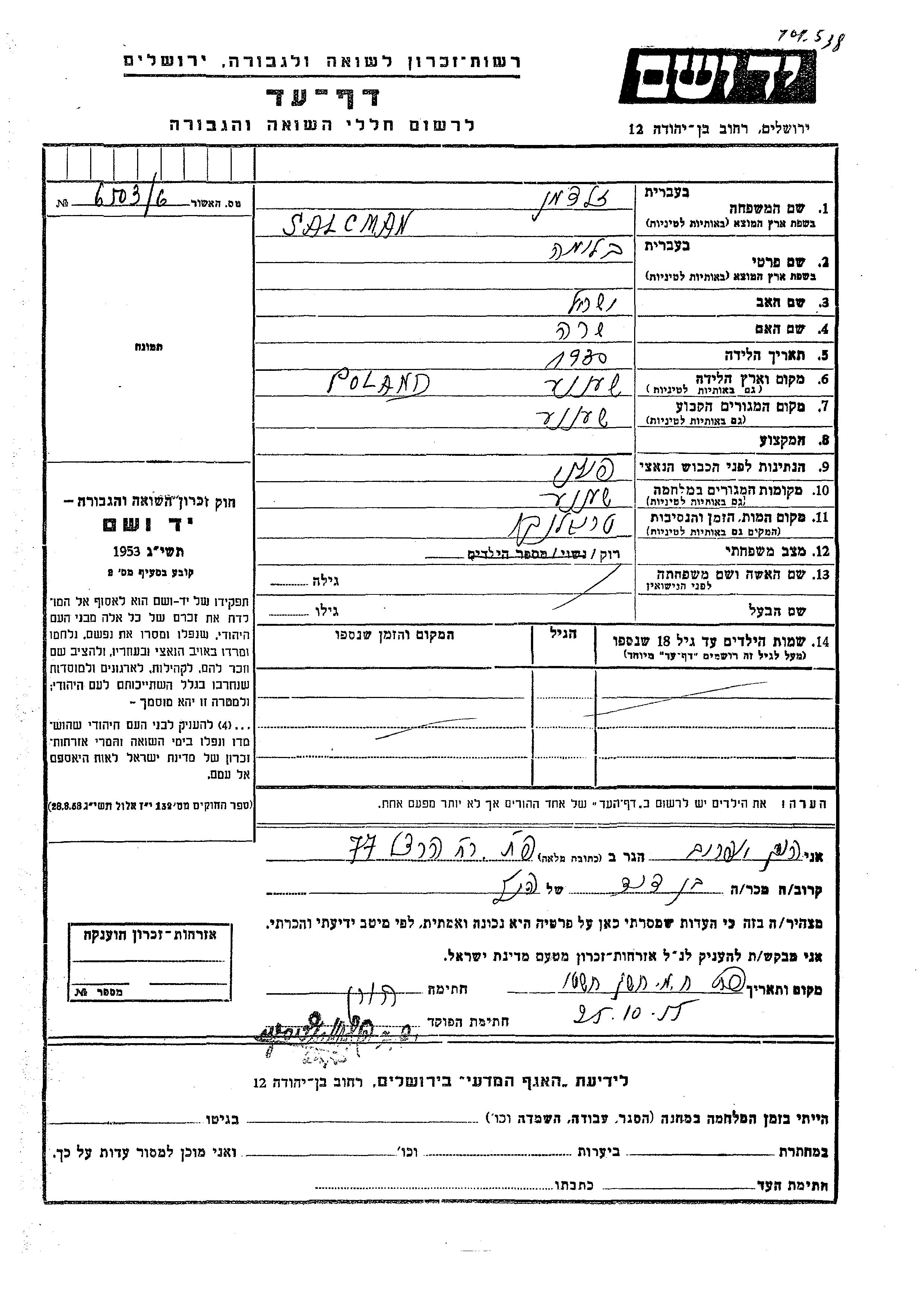 Yad Vashem - Pages of Testimony Names Memorial Collection