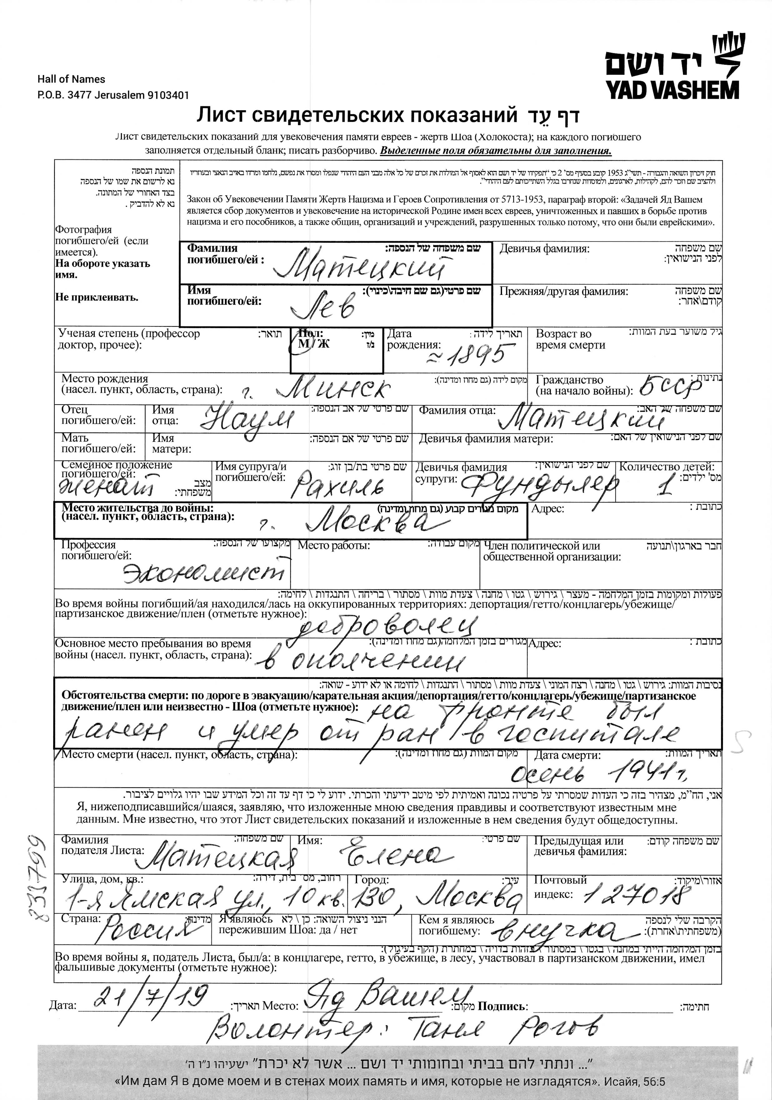 Recherche par date de la mort pendant la période de la Shoah: 1933-1945. Sélectionnez 'Exact'; dans la liste pour rechercher l'année exacte, ou sélectionner '+/- 2 ans'; ou '+/- 5 ans