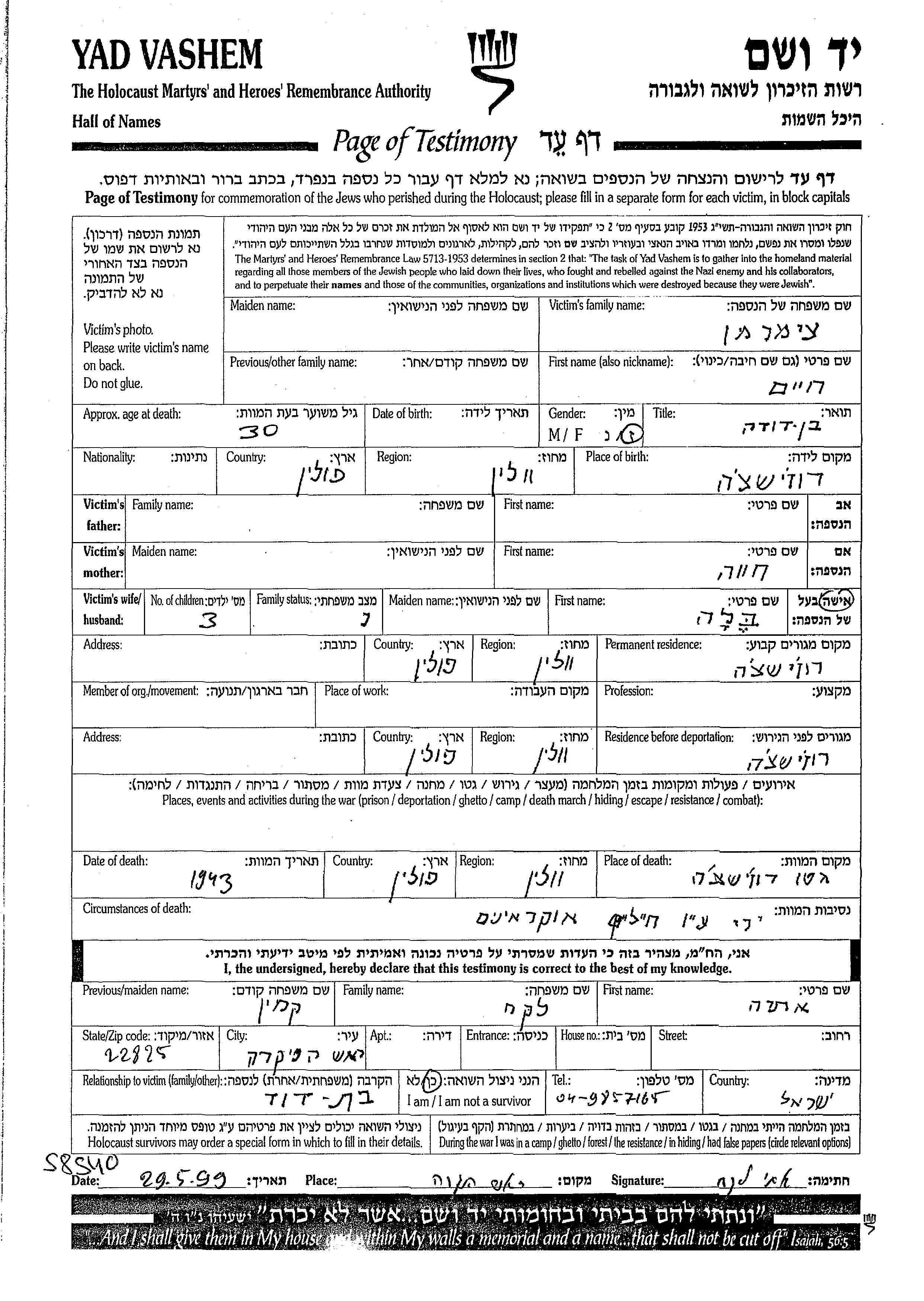 Yad Vashem - Pages of Testimony Names Memorial Collection