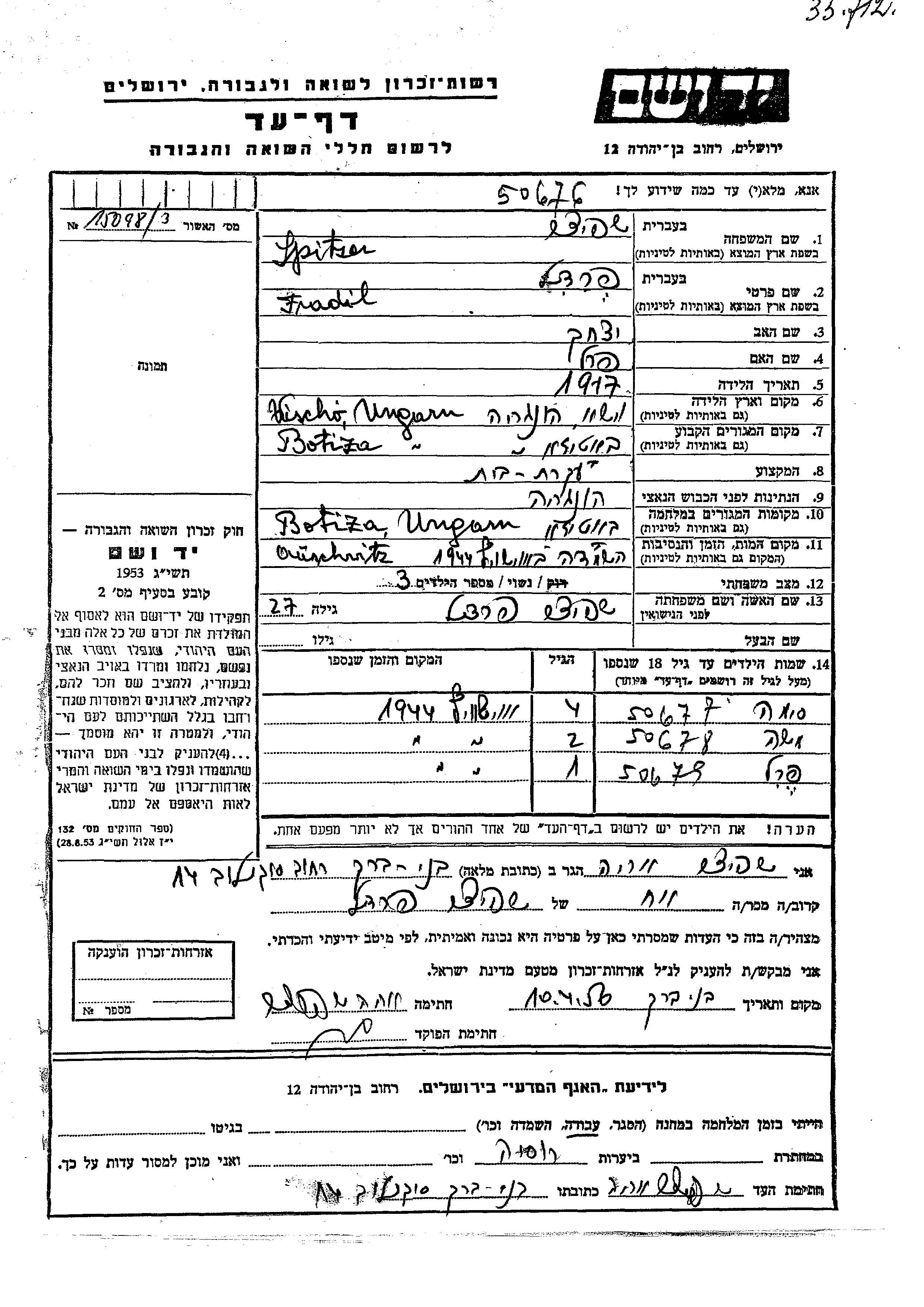 Yad Vashem - Pages of Testimony Names Memorial Collection