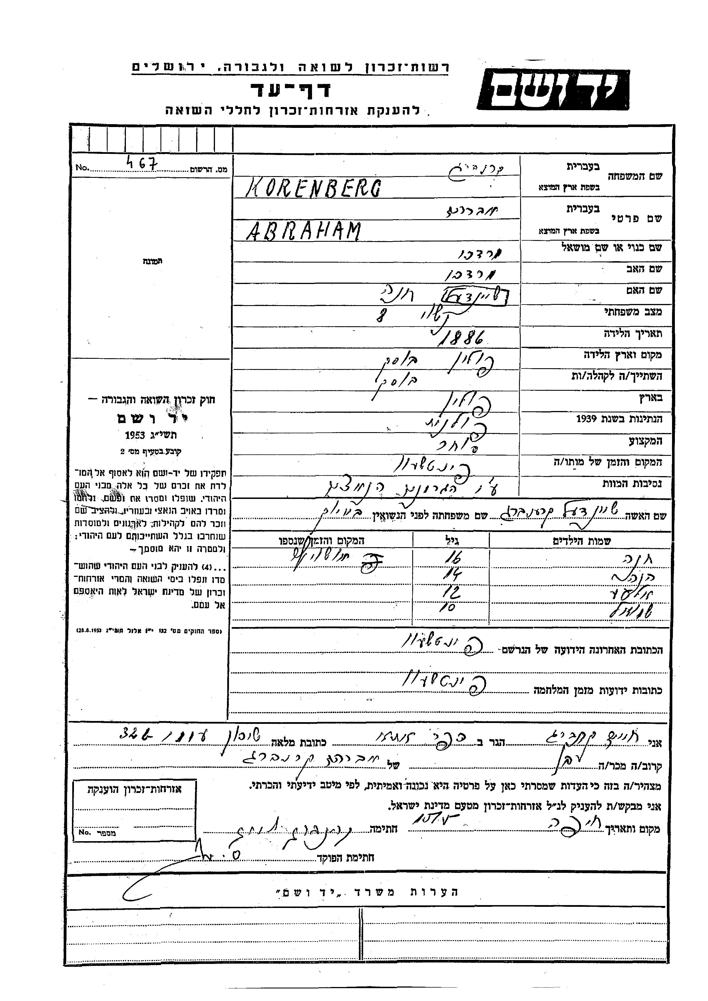 Yad Vashem - Pages of Testimony Names Memorial Collection
