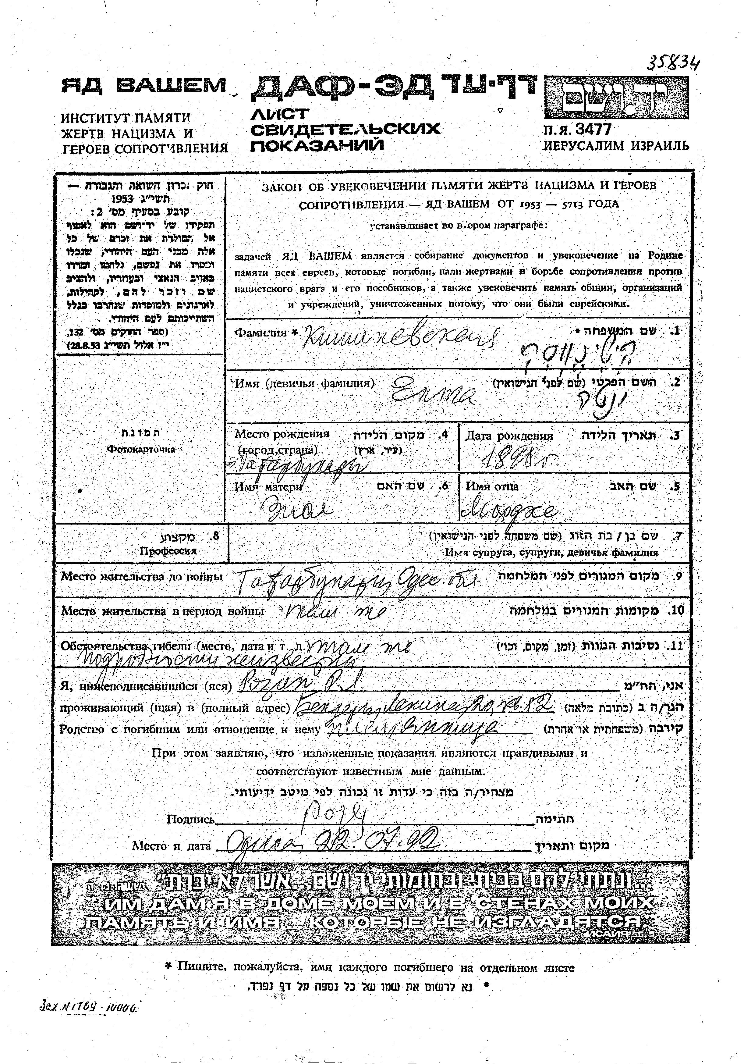 Yad Vashem - Pages of Testimony Names Memorial Collection