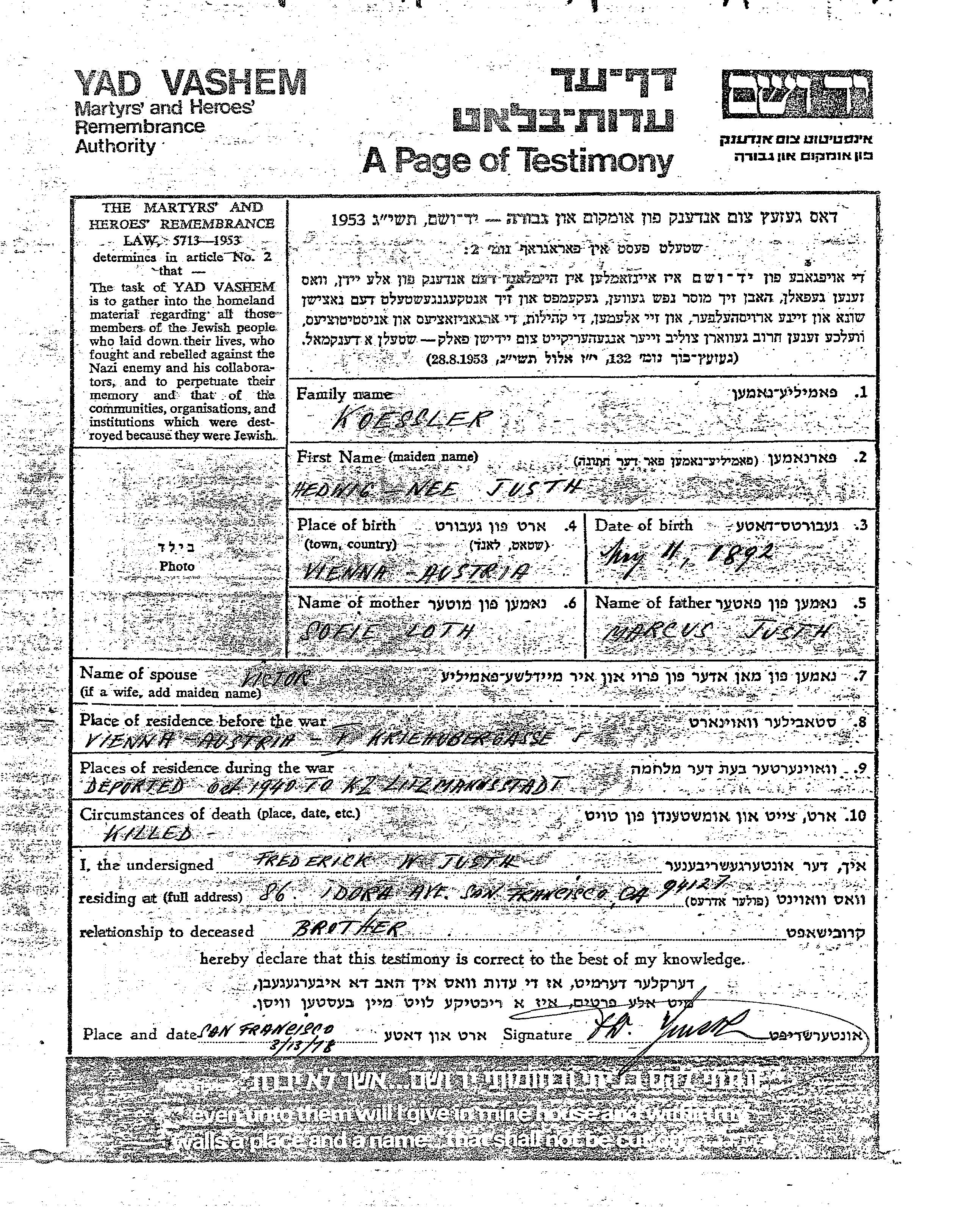 Yad Vashem - Pages of Testimony Names Memorial Collection