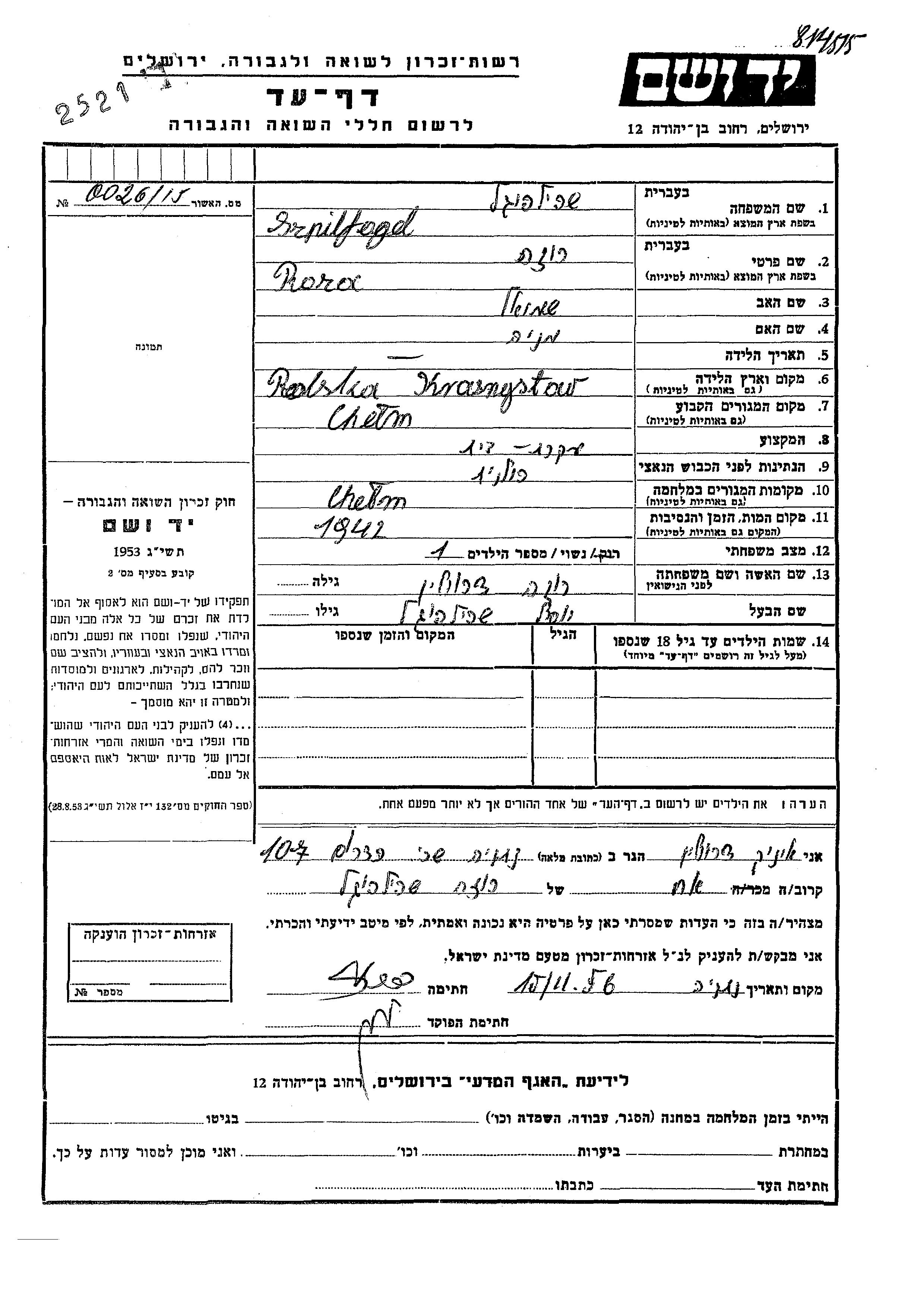 Yad Vashem - Pages of Testimony Names Memorial Collection