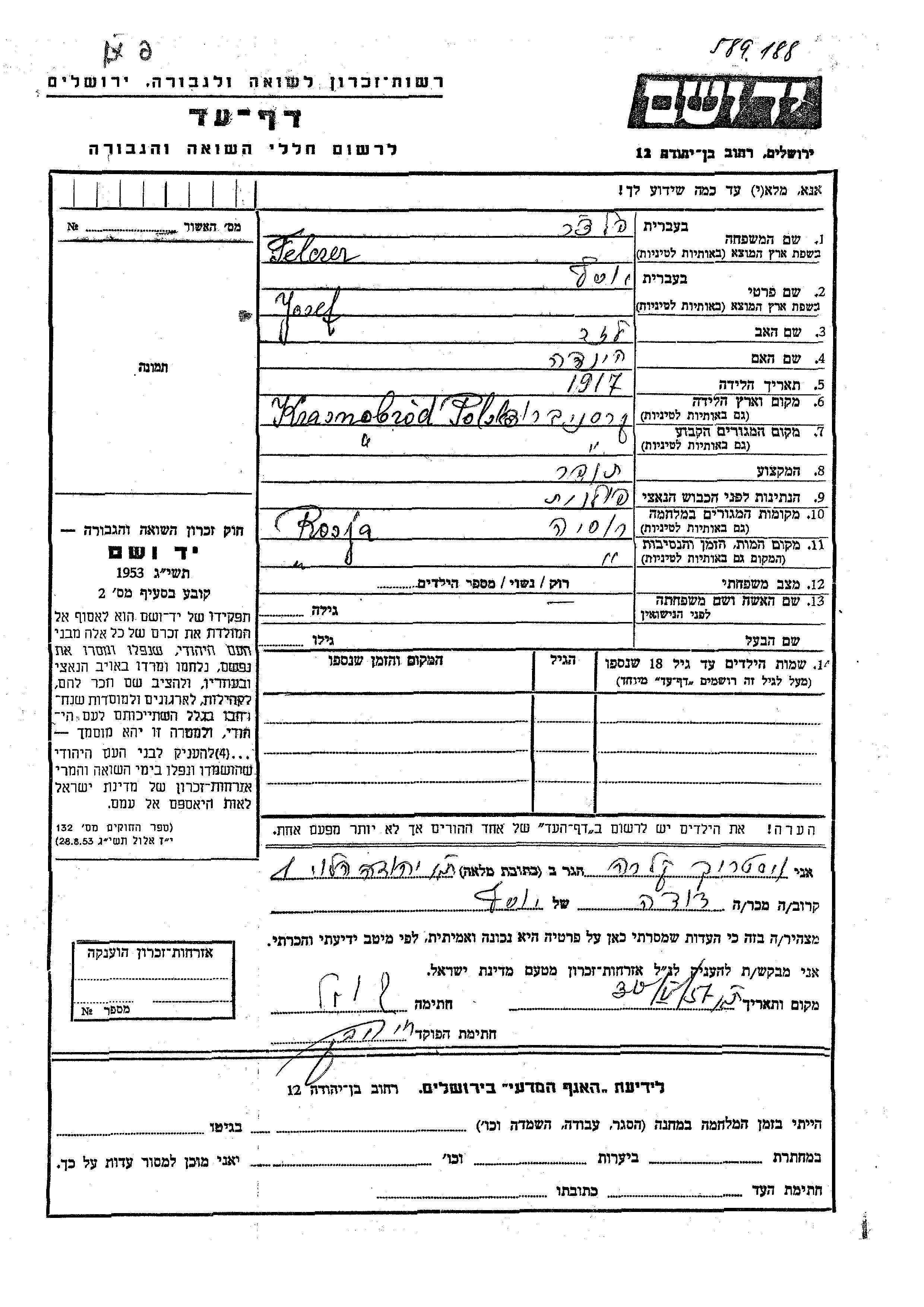 Yosef a été assassiné pendant la Shoah. Lieu de la mort: Russie (URSS).