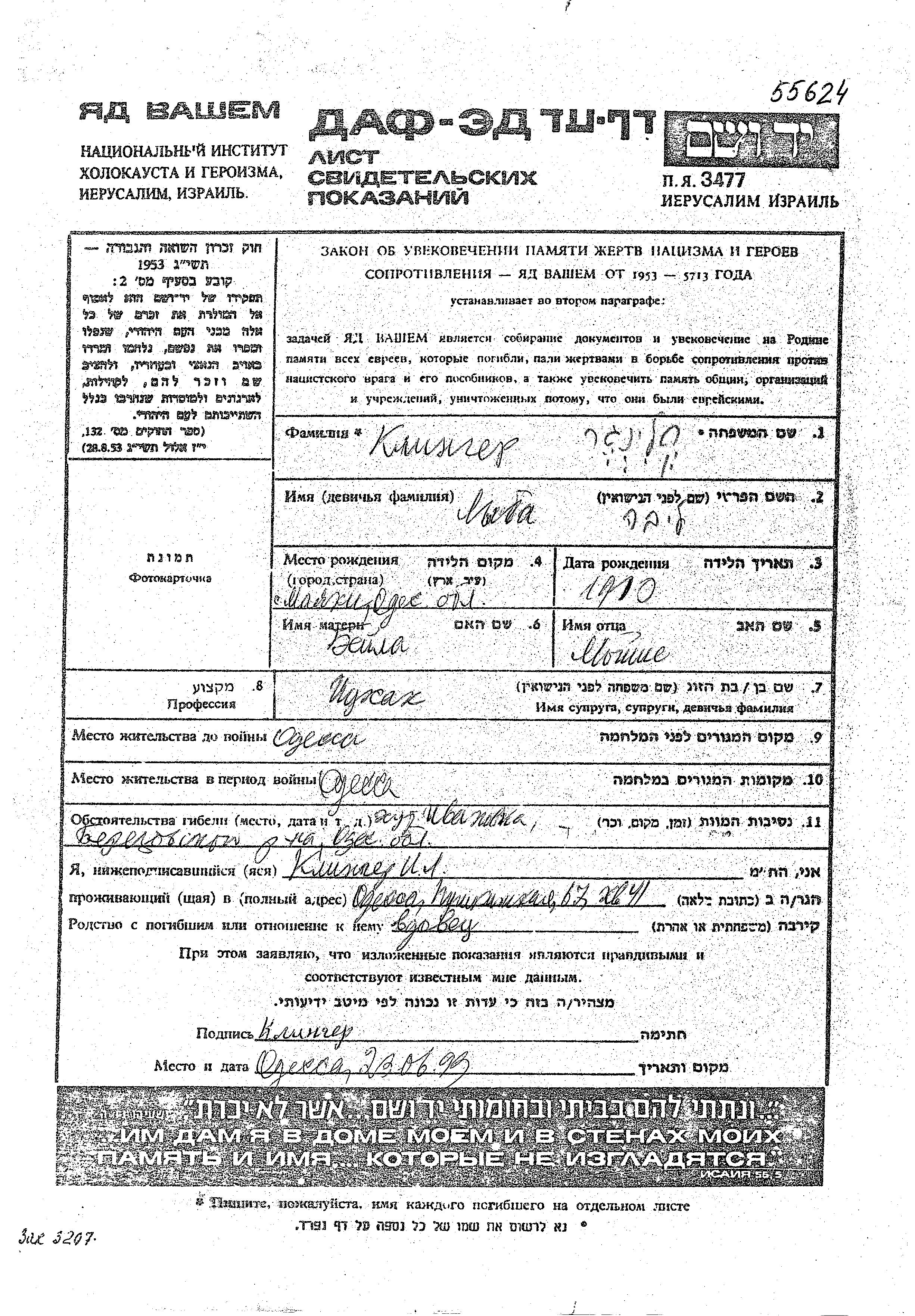 Klinger Lyba 1910 Odessa, Ukraine (URSS) Liste de personnes persécutées