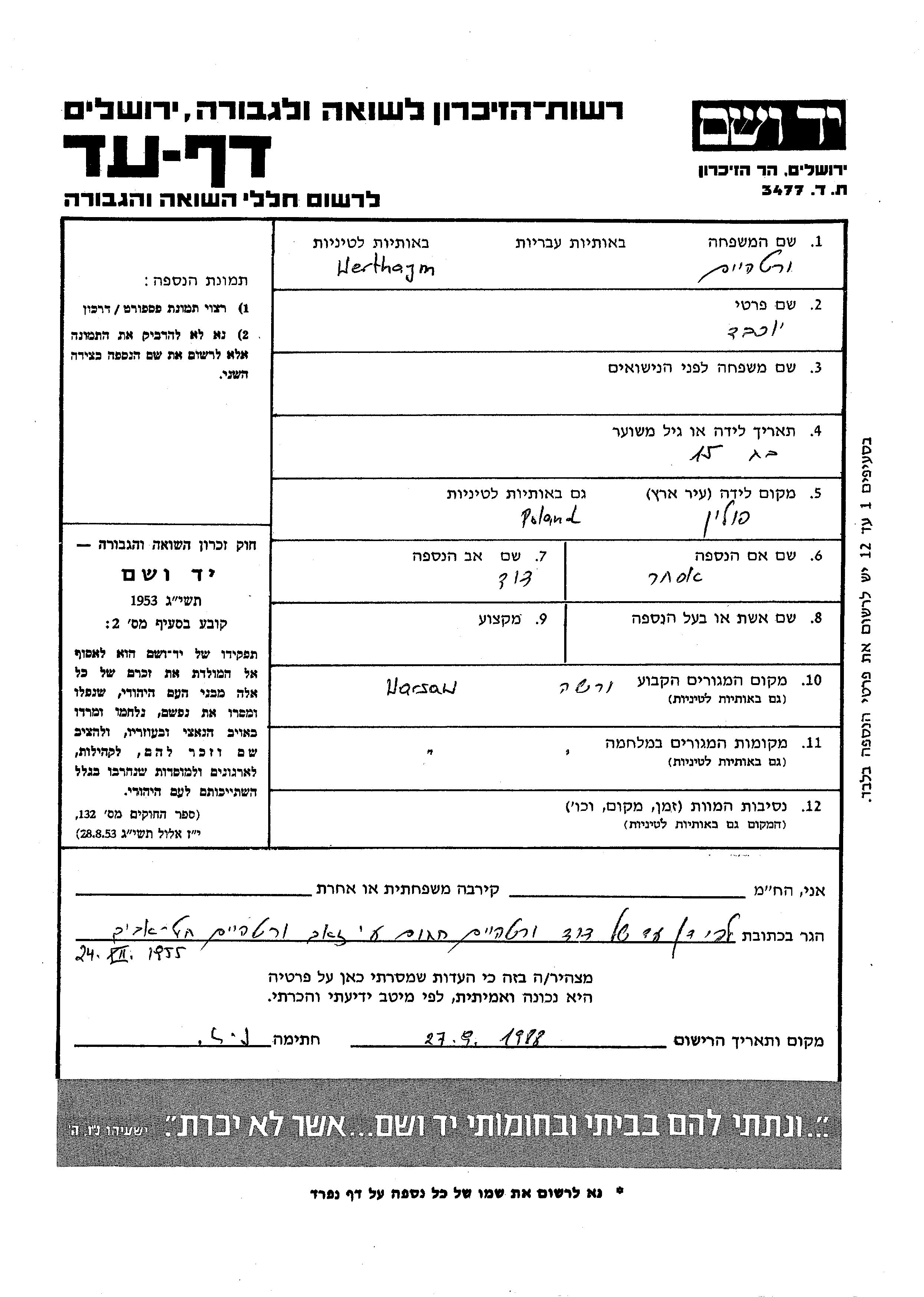 Werthajm | Yokheved | Warsaw, Pologne | Feuille de témoignage | |