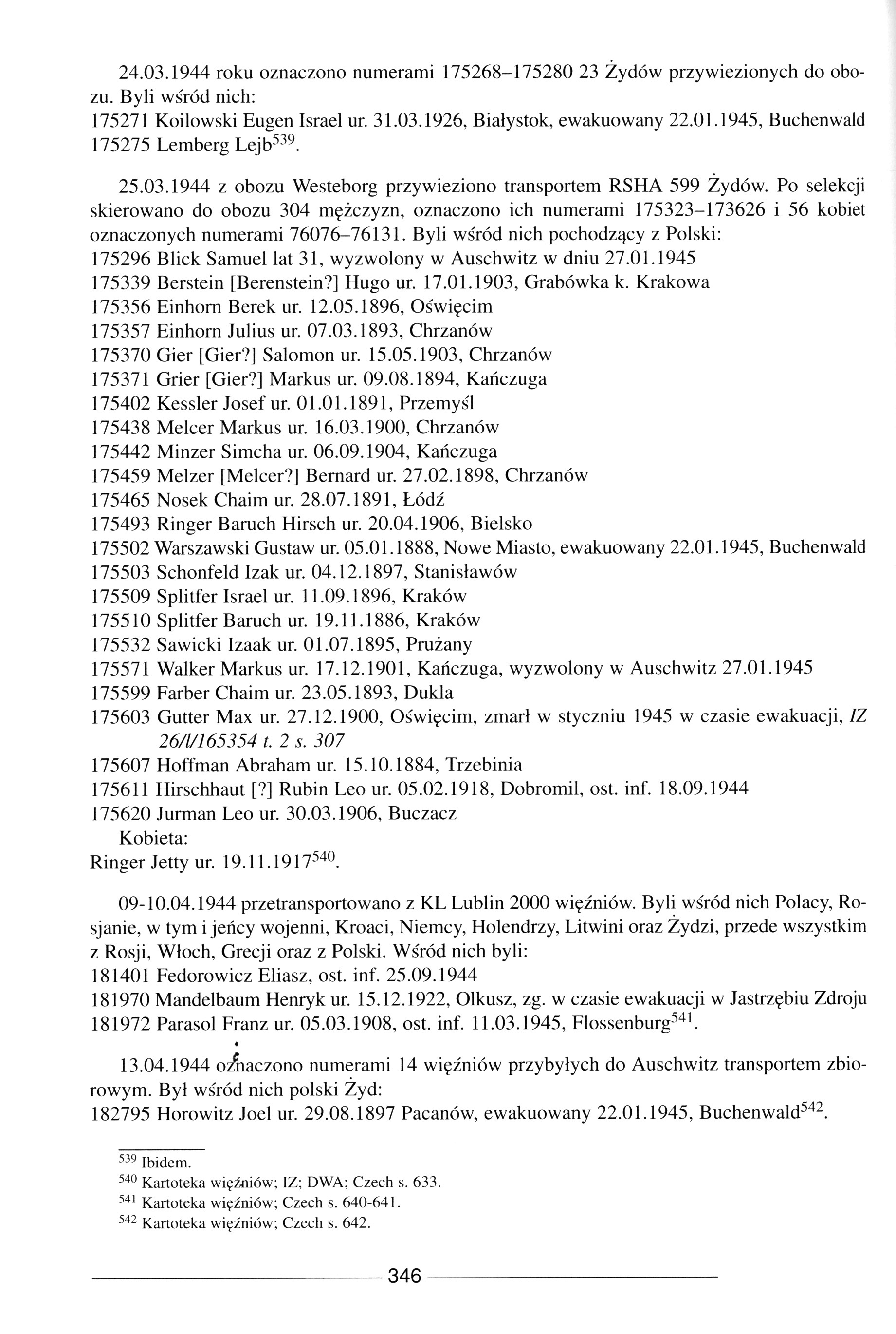 Lists including names of Jews from Poland who were inmates in Auschwitz