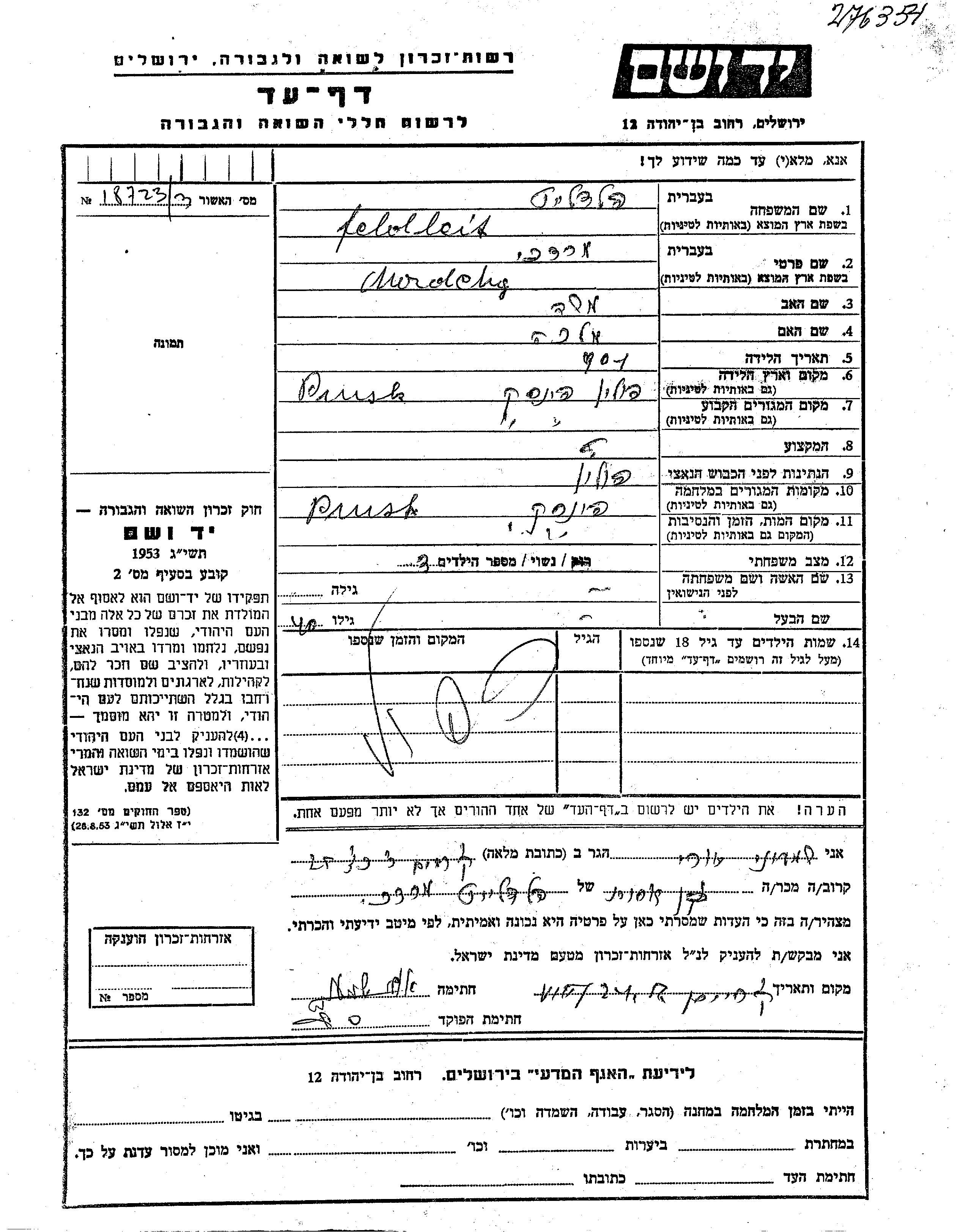 Yad Vashem - Pages of Testimony Names Memorial Collection