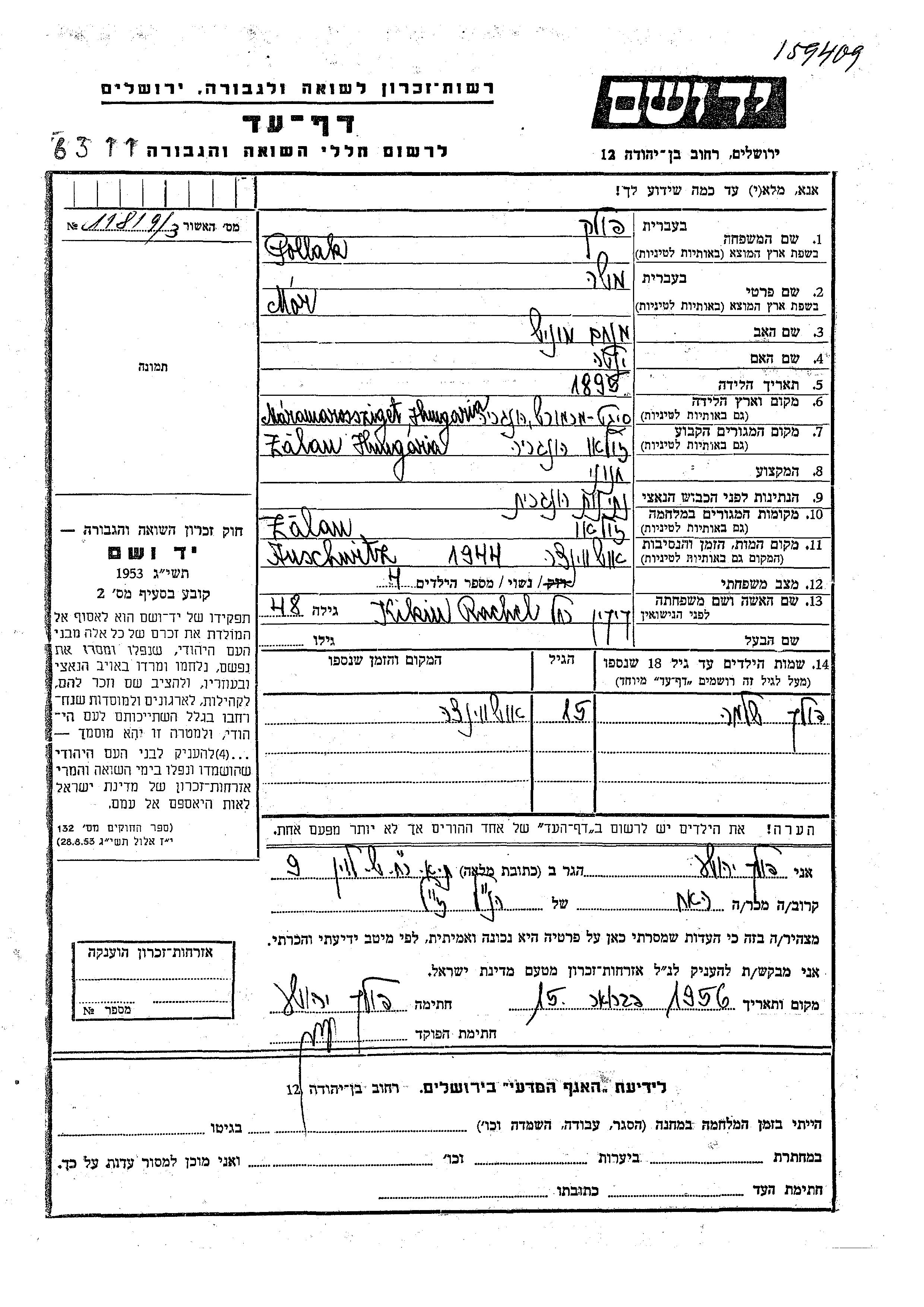 Yad Vashem - Pages of Testimony Names Memorial Collection