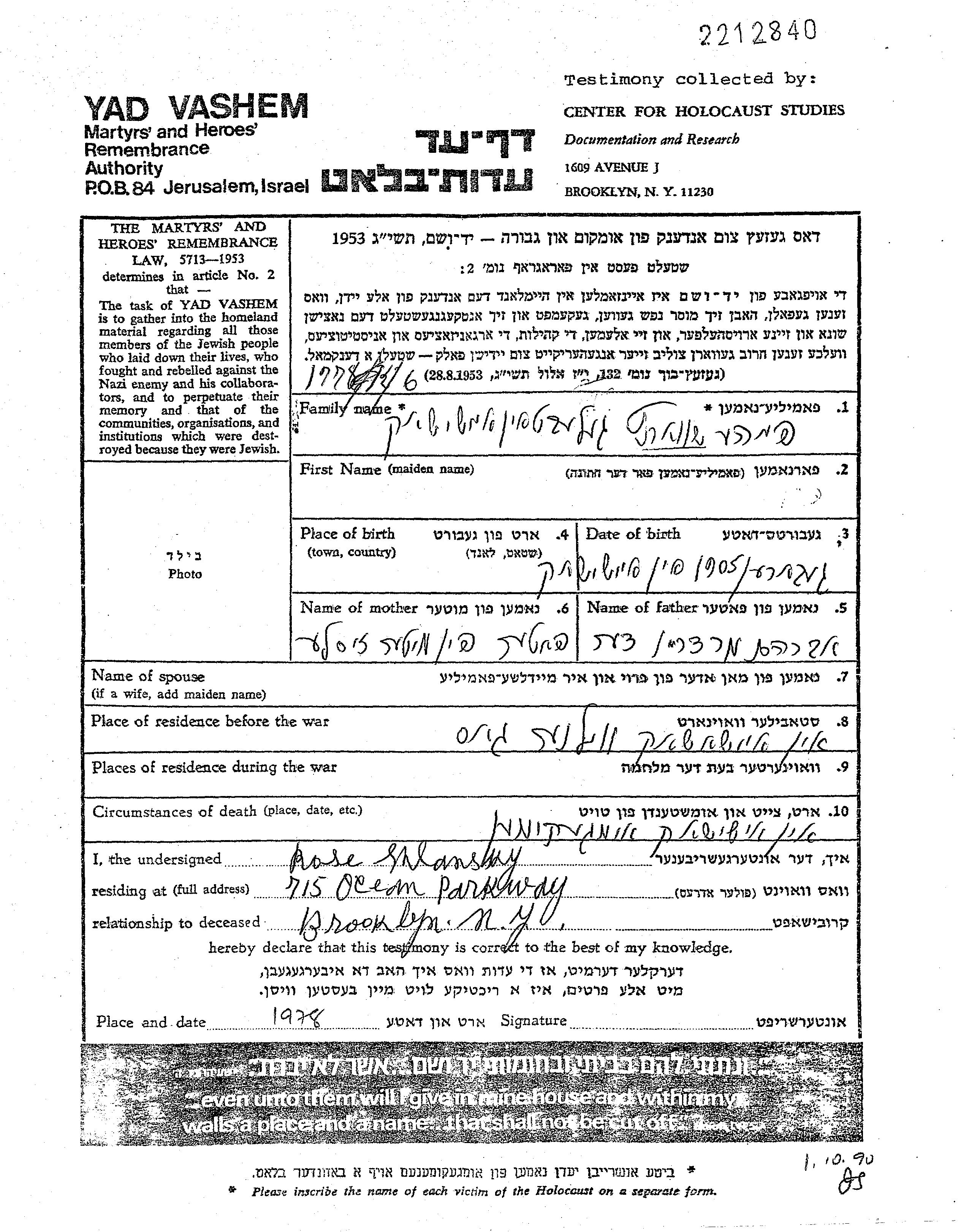 Yad Vashem - Pages of Testimony Names Memorial Collection