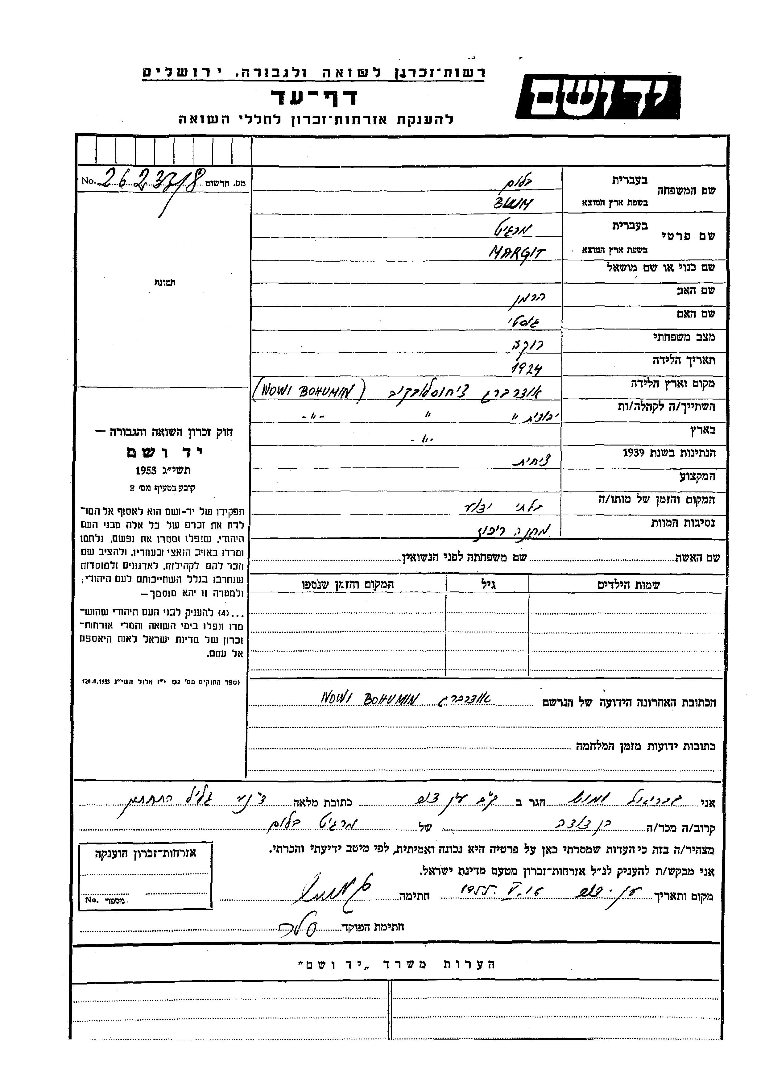 Yad Vashem - Pages of Testimony Names Memorial Collection
