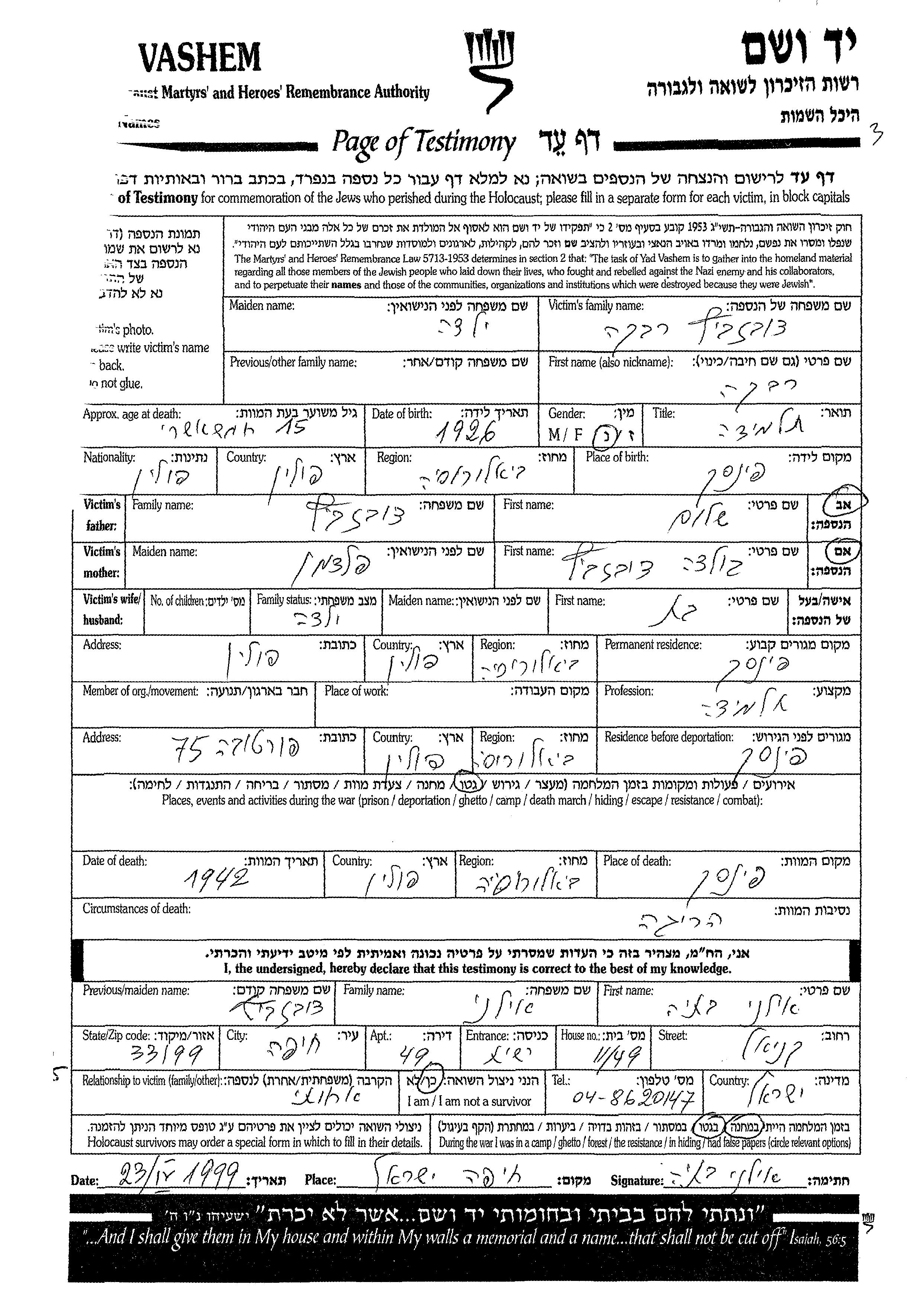 Yad Vashem - Pages of Testimony Names Memorial Collection