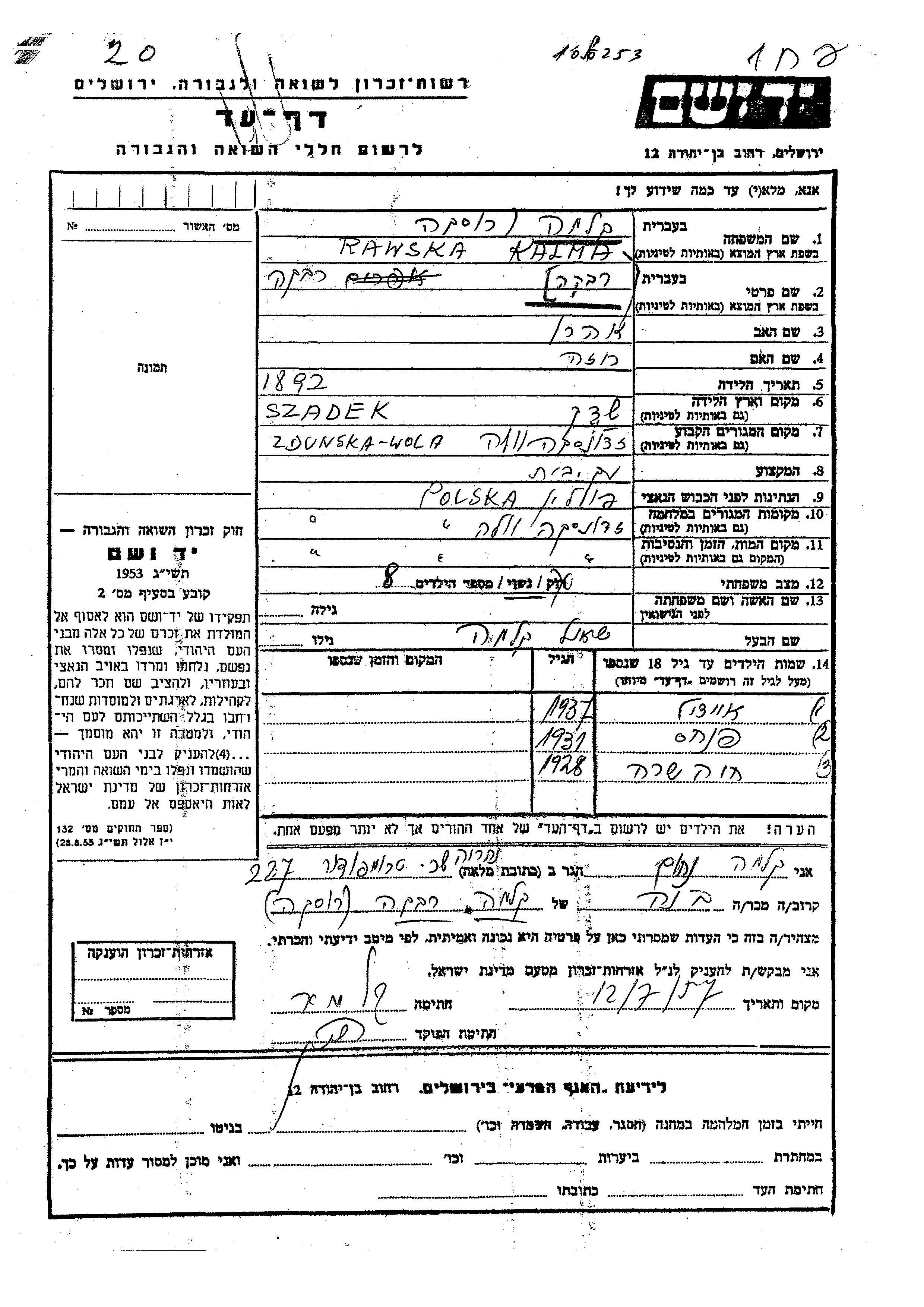 Yad Vashem - Pages of Testimony Names Memorial Collection