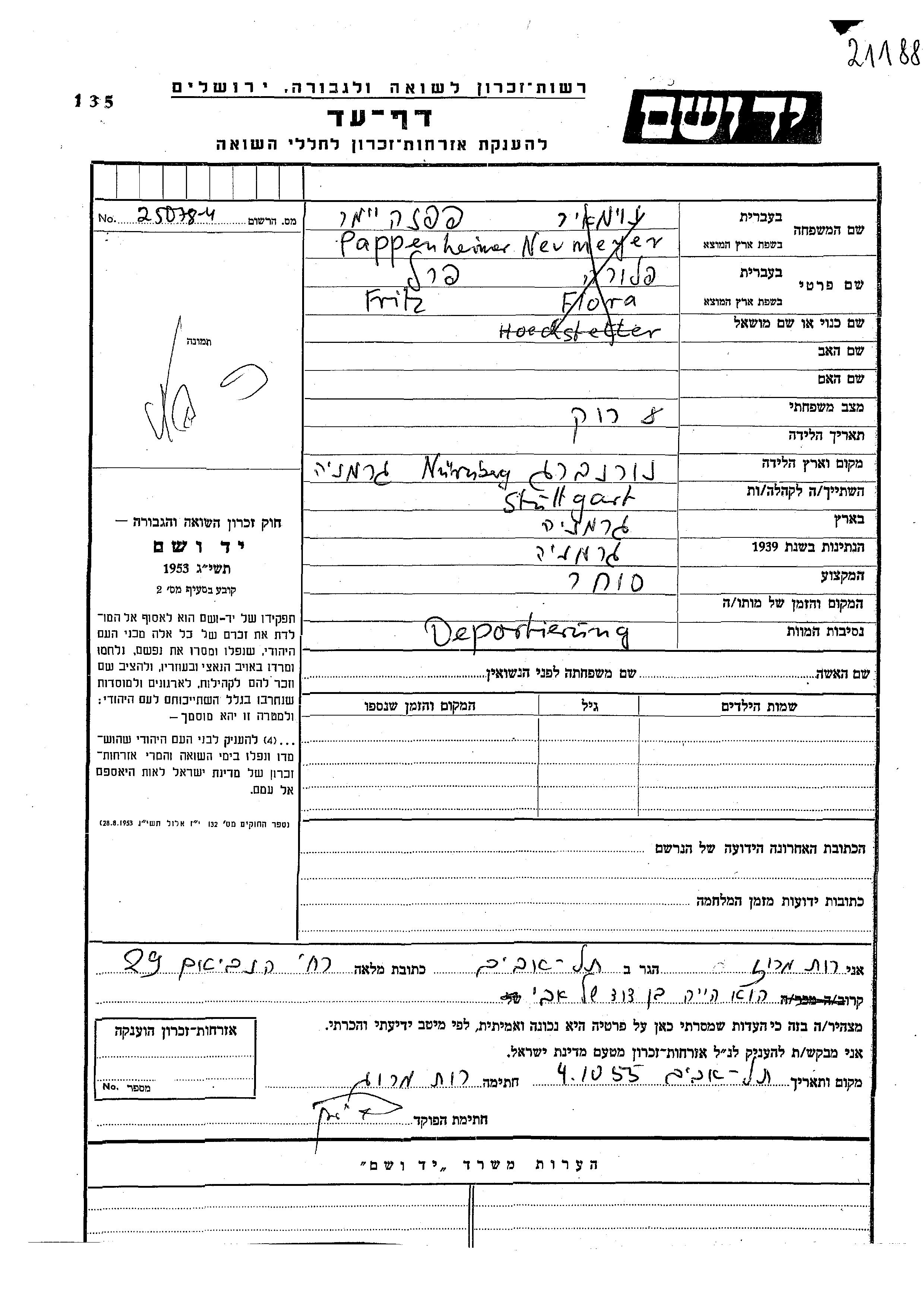 Yad Vashem - Pages of Testimony Names Memorial Collection