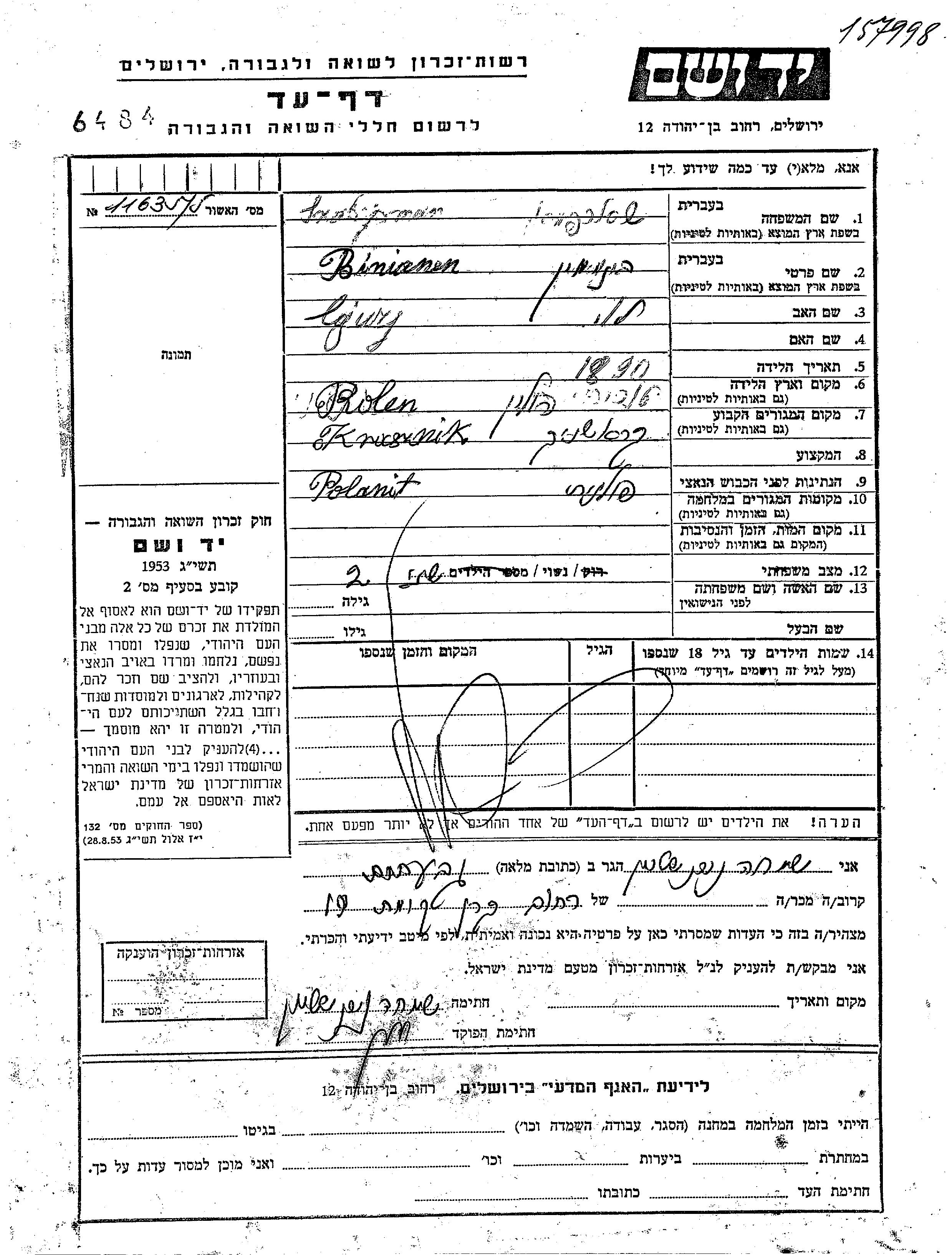 Yad Vashem - Pages of Testimony Names Memorial Collection