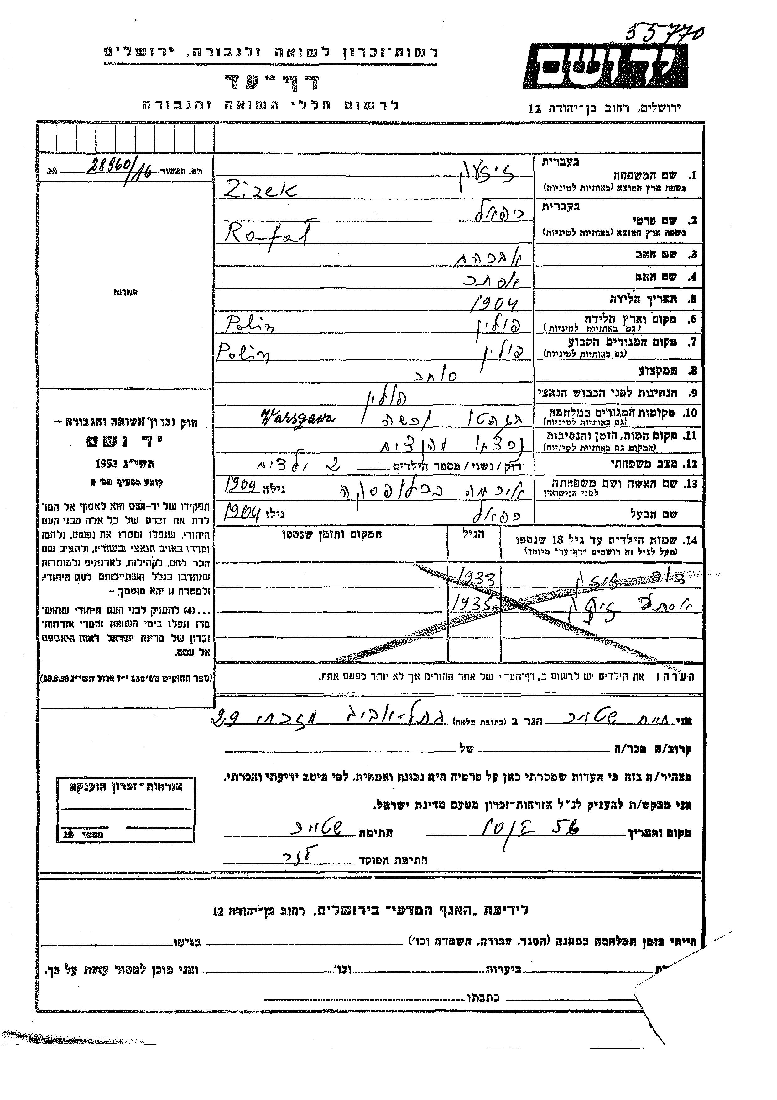 Yad Vashem - Pages of Testimony Names Memorial Collection