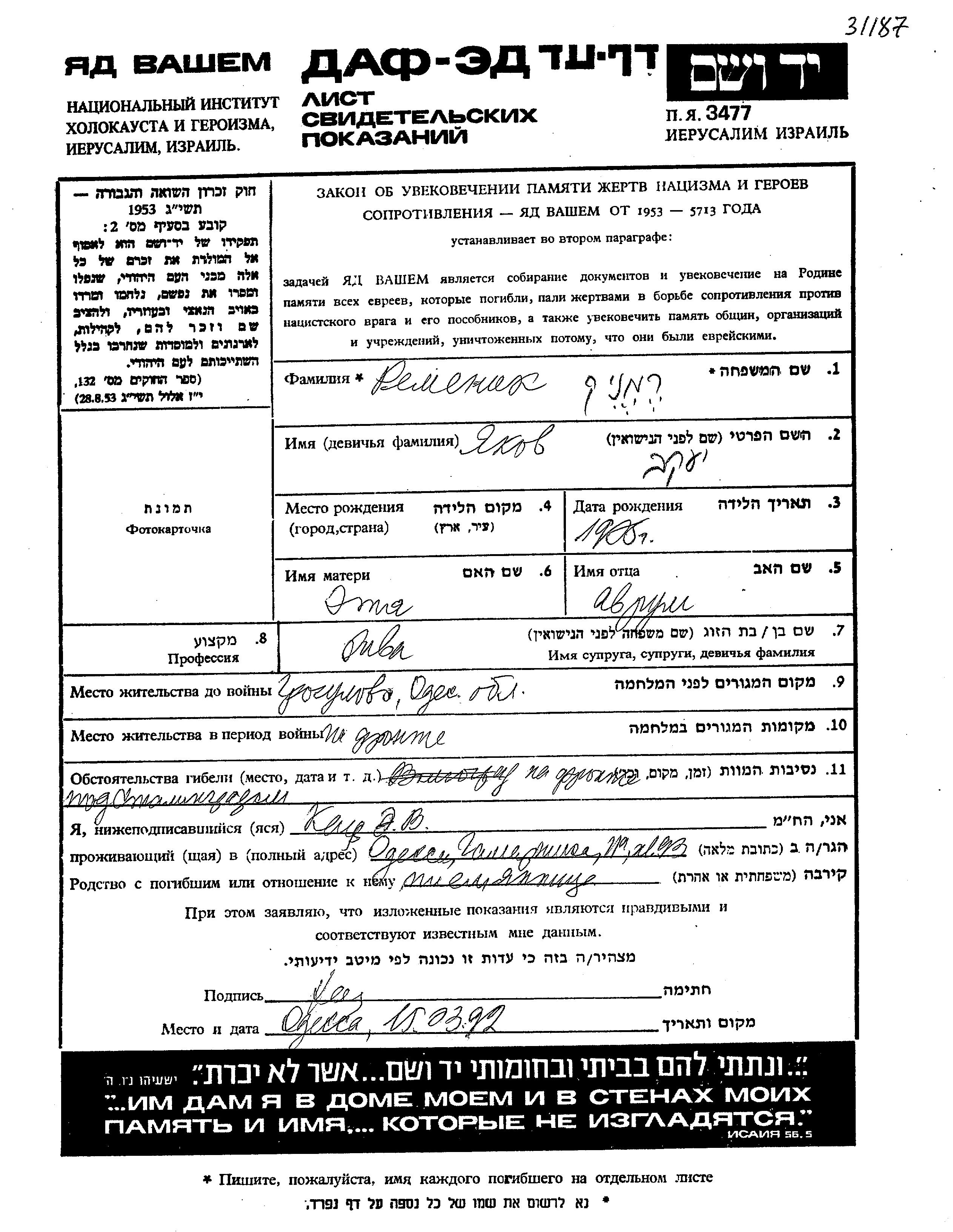 Recherche par lieu de résidence permanente avant la Shoah, ville, village, département, région ou pays.