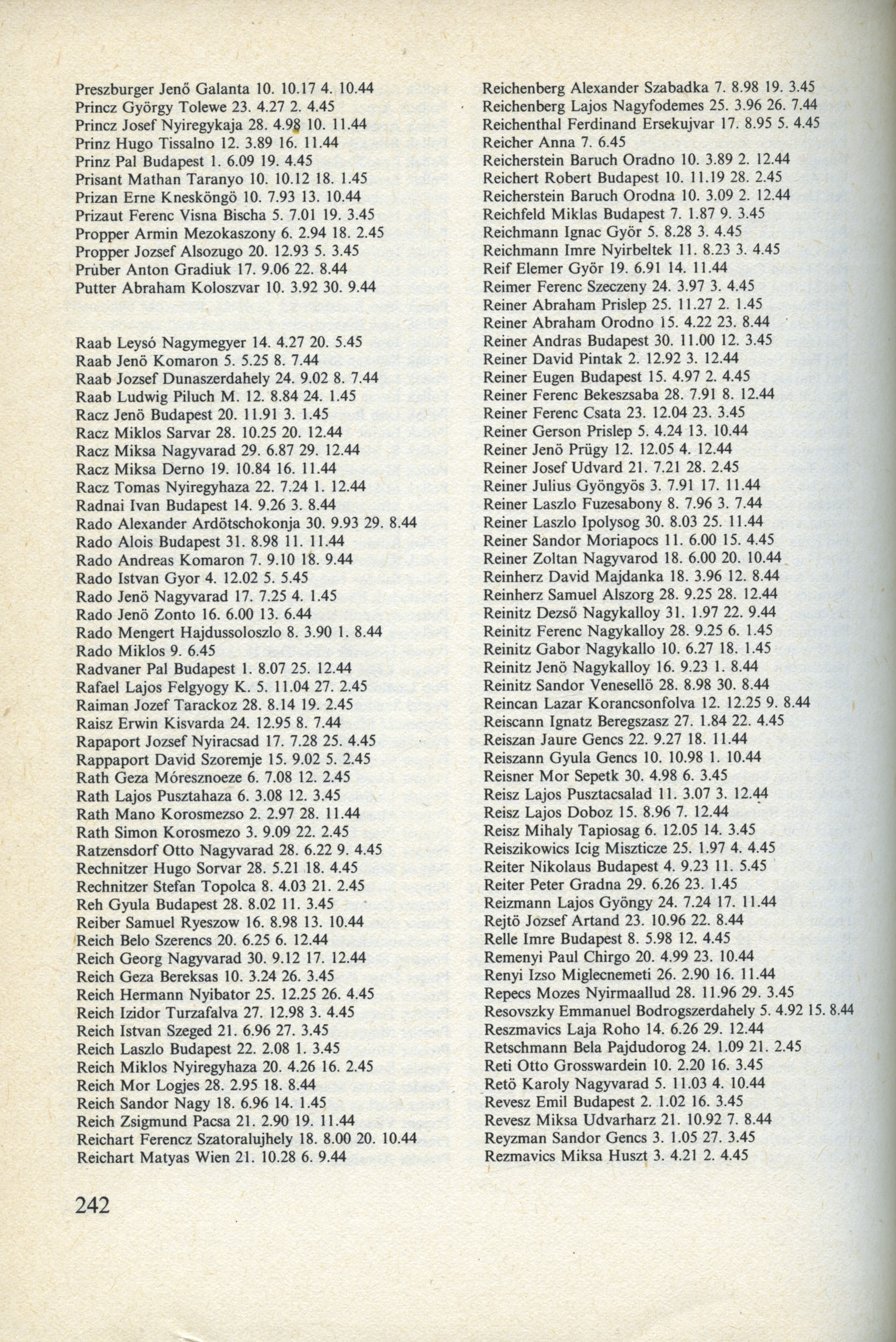 Reich Geza 1924 Beregszasz, Tchécoslovaquie Liste de personnes persécutées