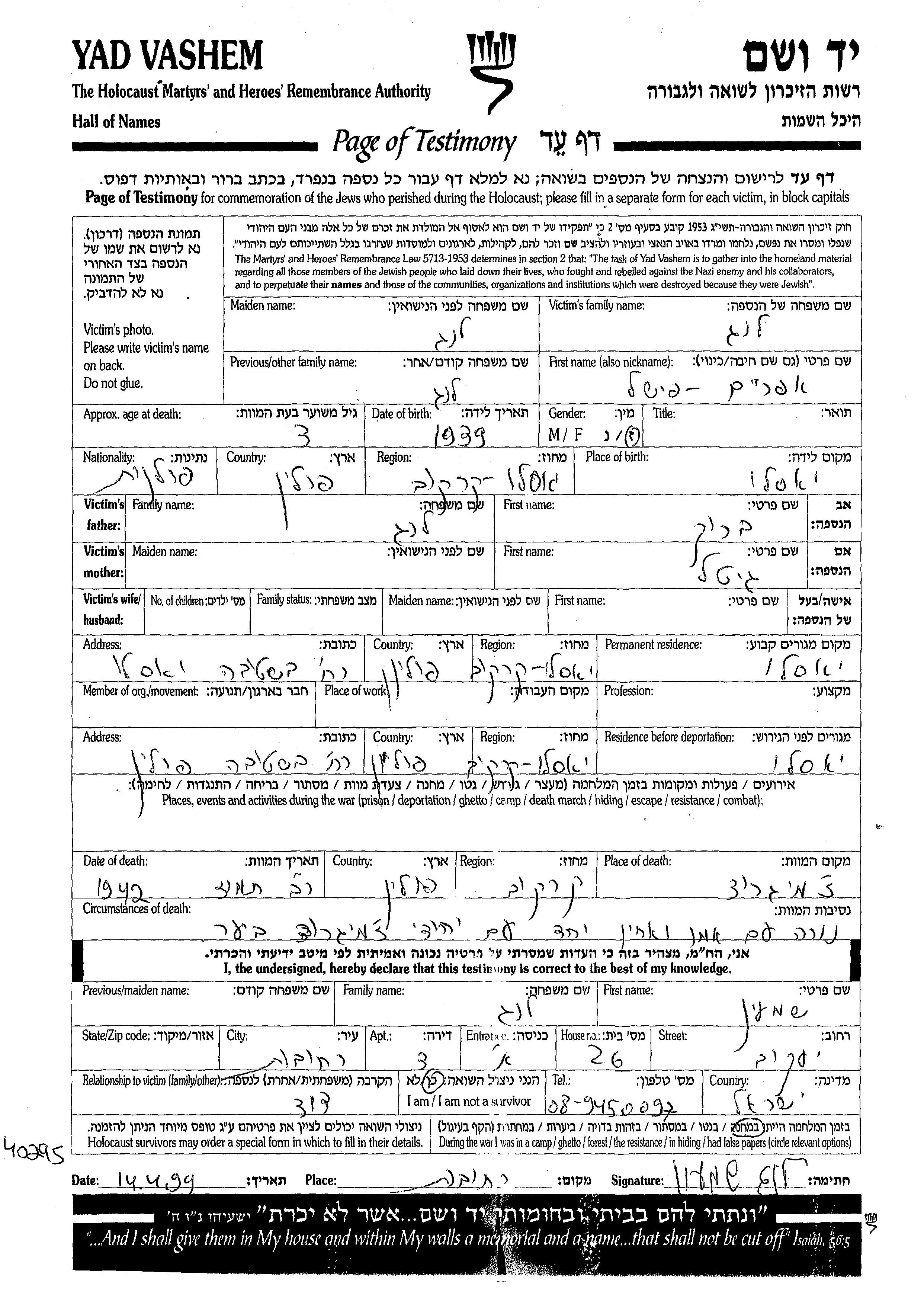 Yad Vashem - Pages of Testimony Names Memorial Collection