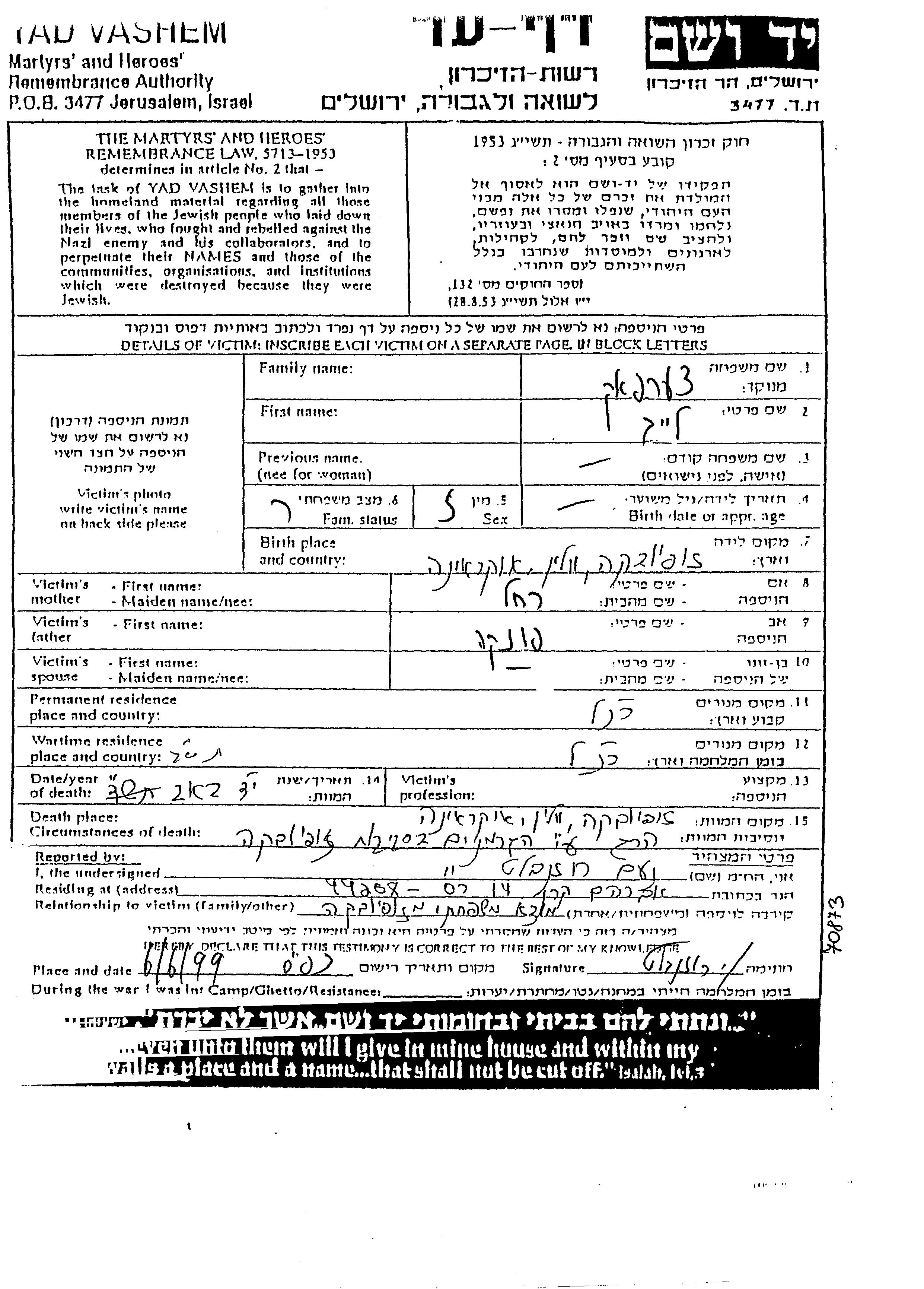 Yad Vashem - Pages of Testimony Names Memorial Collection