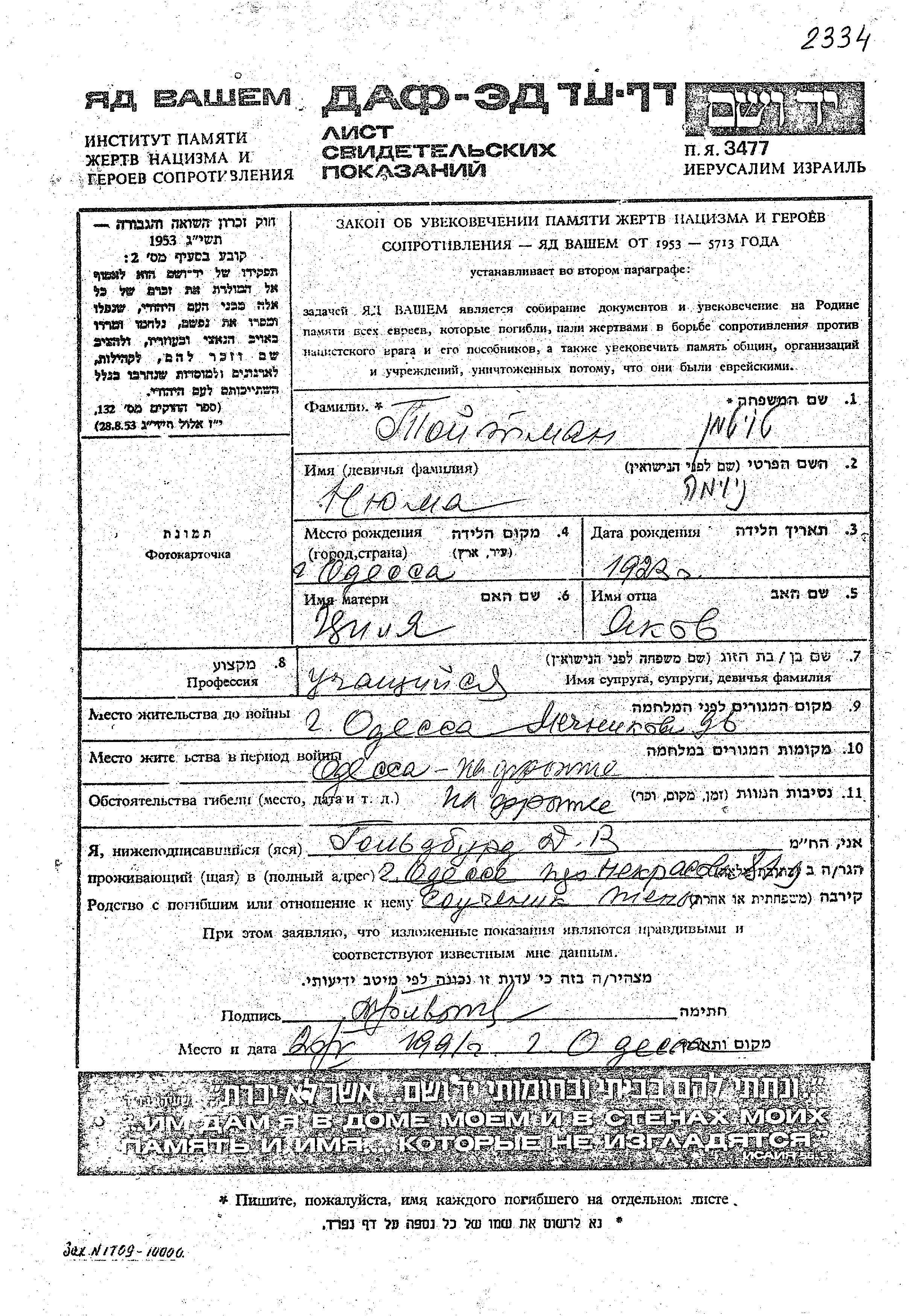 Yad Vashem - Pages of Testimony Names Memorial Collection