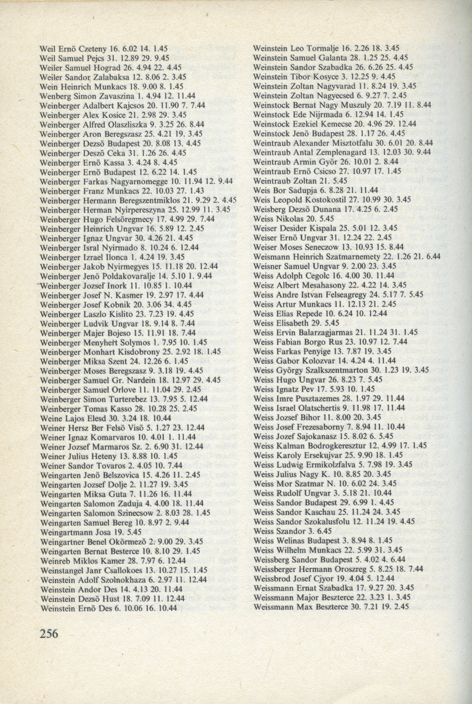 Weinstock Jenö 1917 Budapest, Hongrie Liste de personnes persécutées