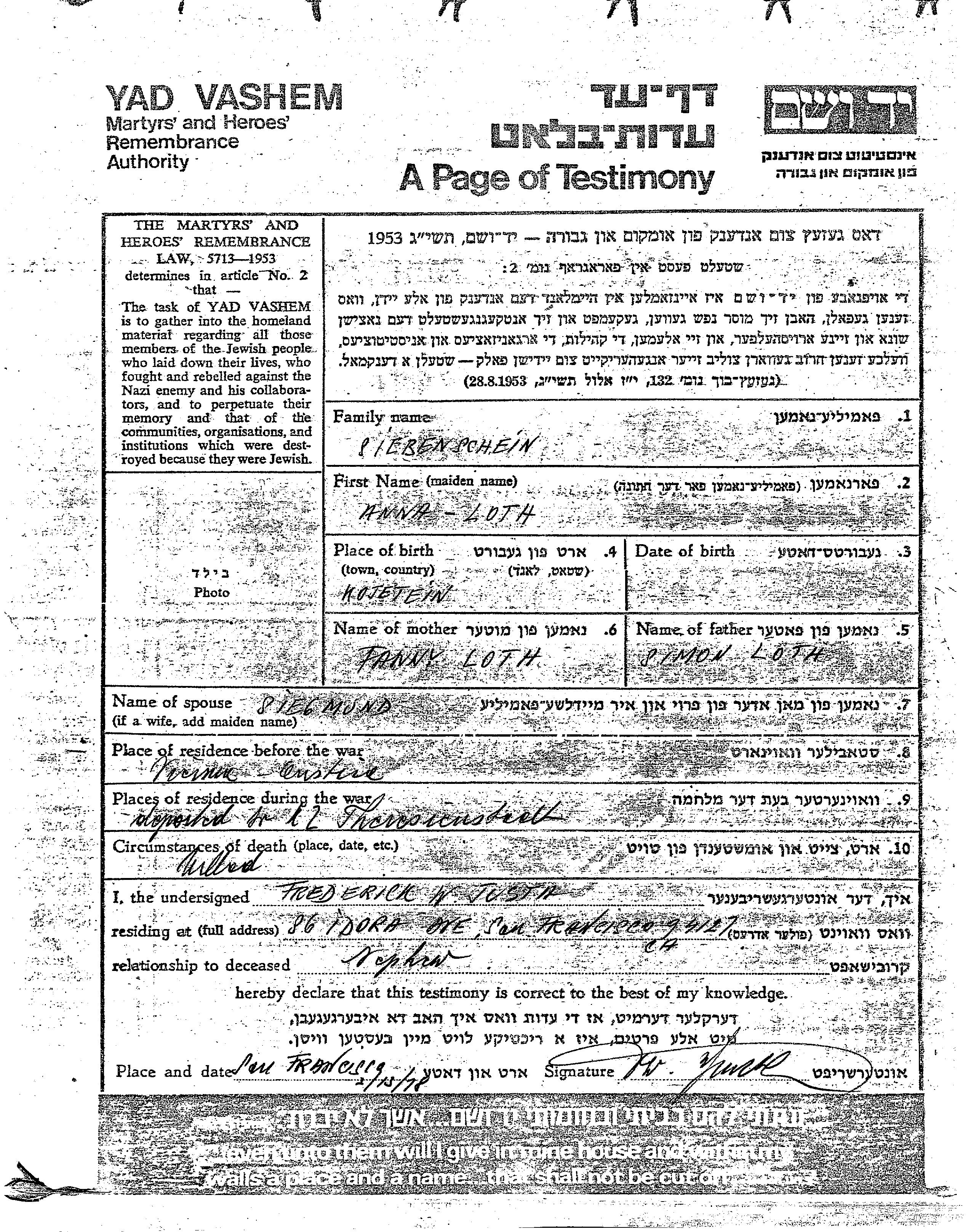 Yad Vashem - Pages of Testimony Names Memorial Collection