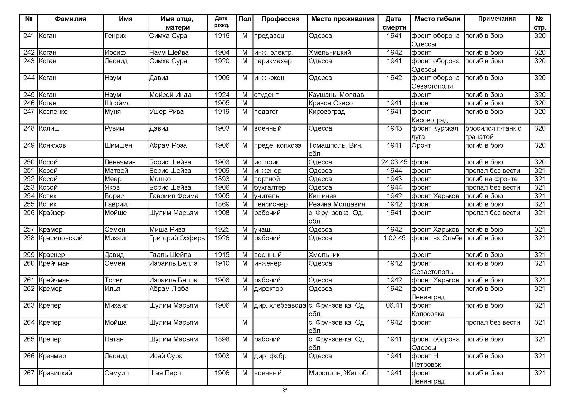 Kreper Moysha Frunzovka, Ukraine (URSS) Liste de personnes persécutées