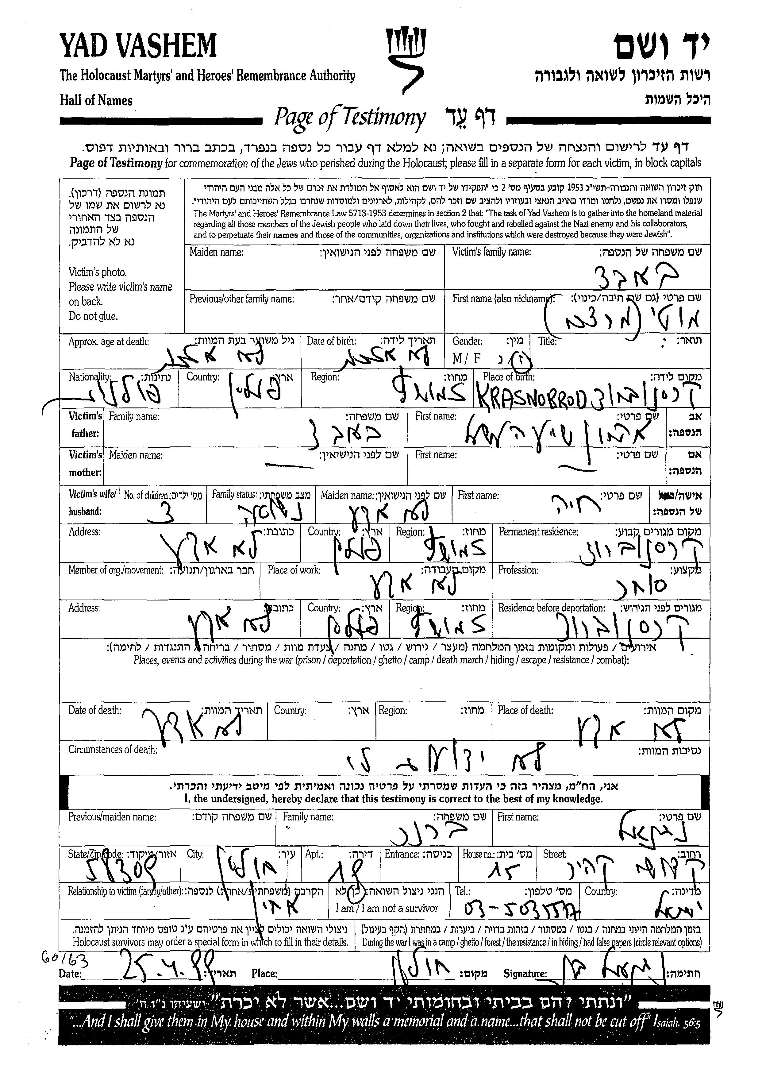 Yad Vashem - Pages of Testimony Names Memorial Collection