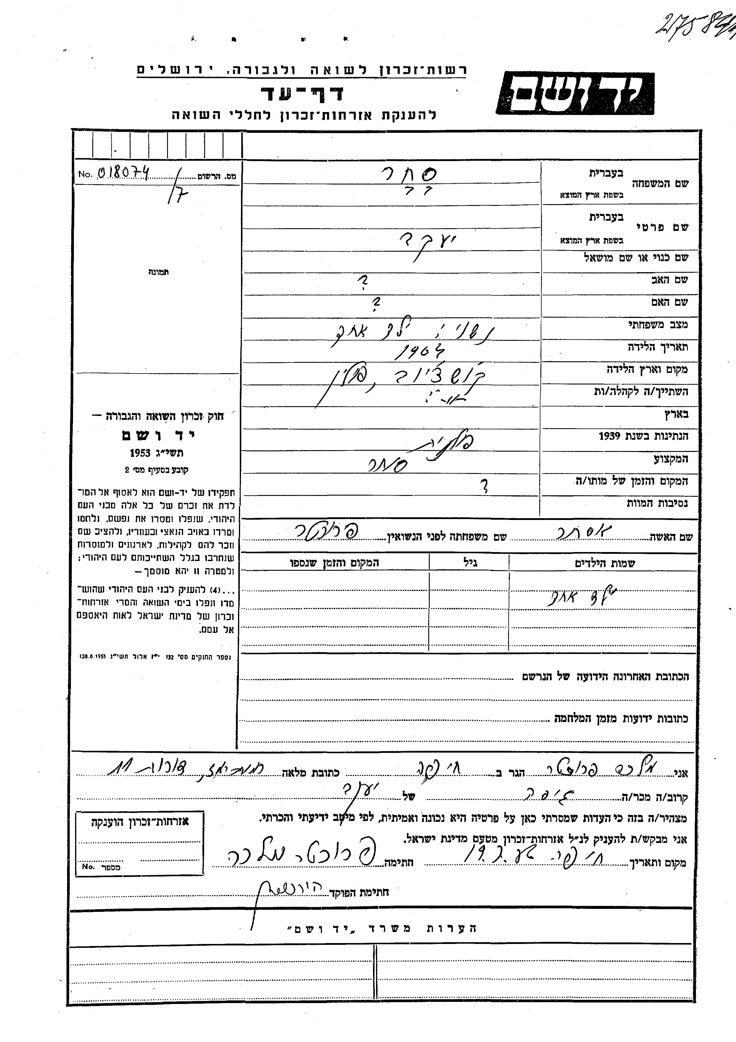 Yad Vashem - Pages of Testimony Names Memorial Collection