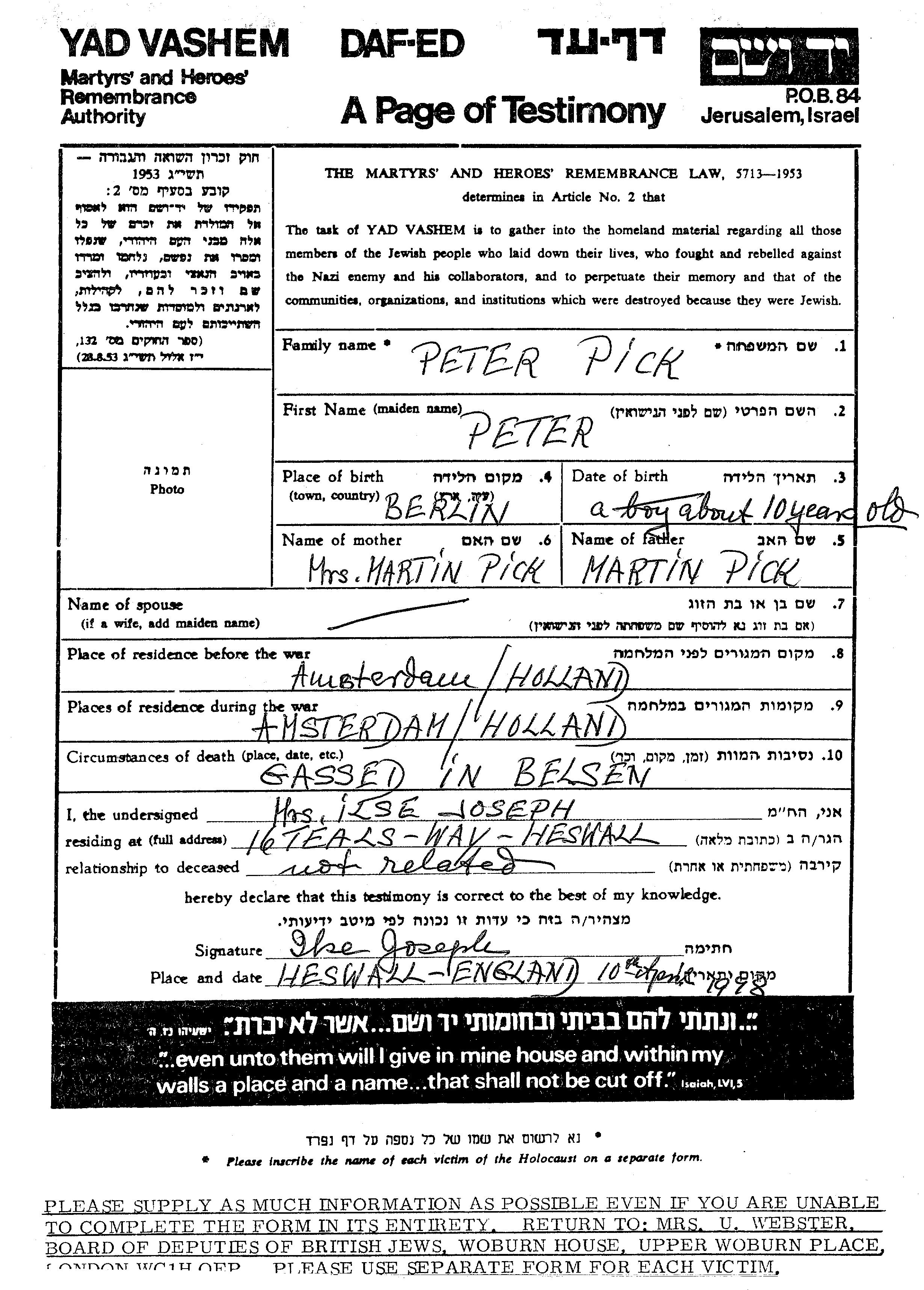 Recherche par nom du dépositeur de la Feuille de témoignage. Cette recherché indique aussi les noms de jeunes filles.