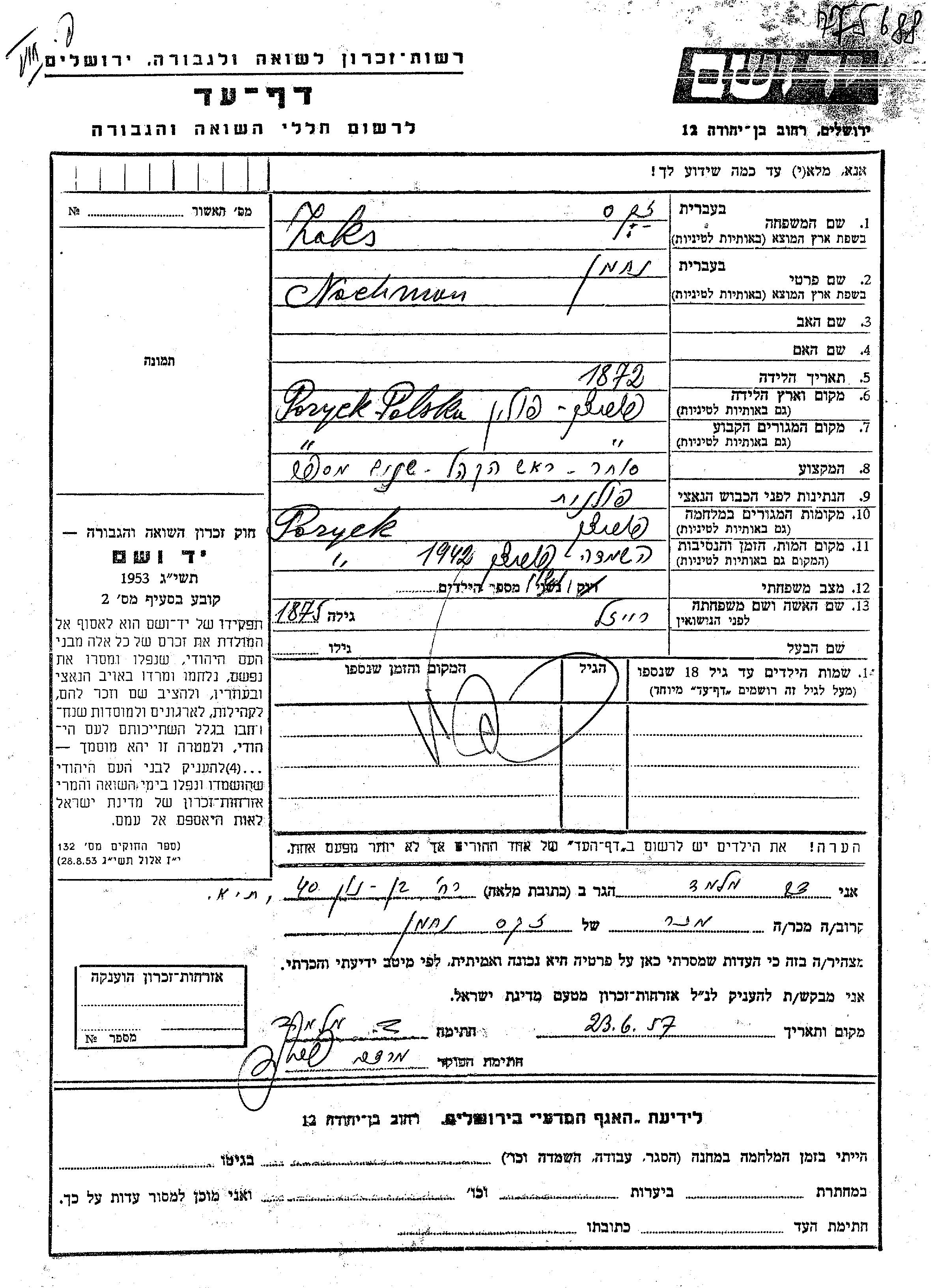 Yad Vashem - Pages of Testimony Names Memorial Collection
