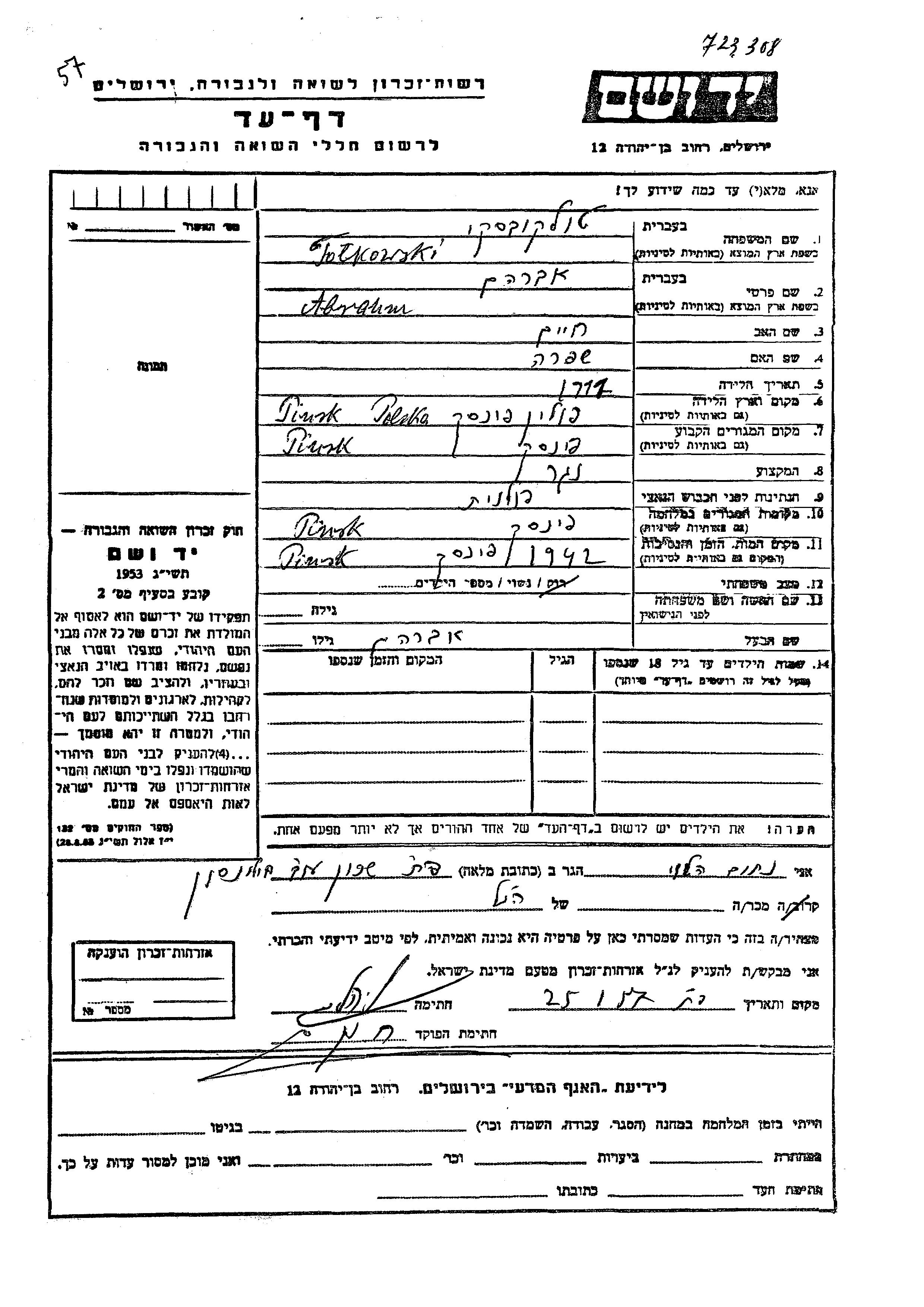 Yad Vashem - Pages of Testimony Names Memorial Collection