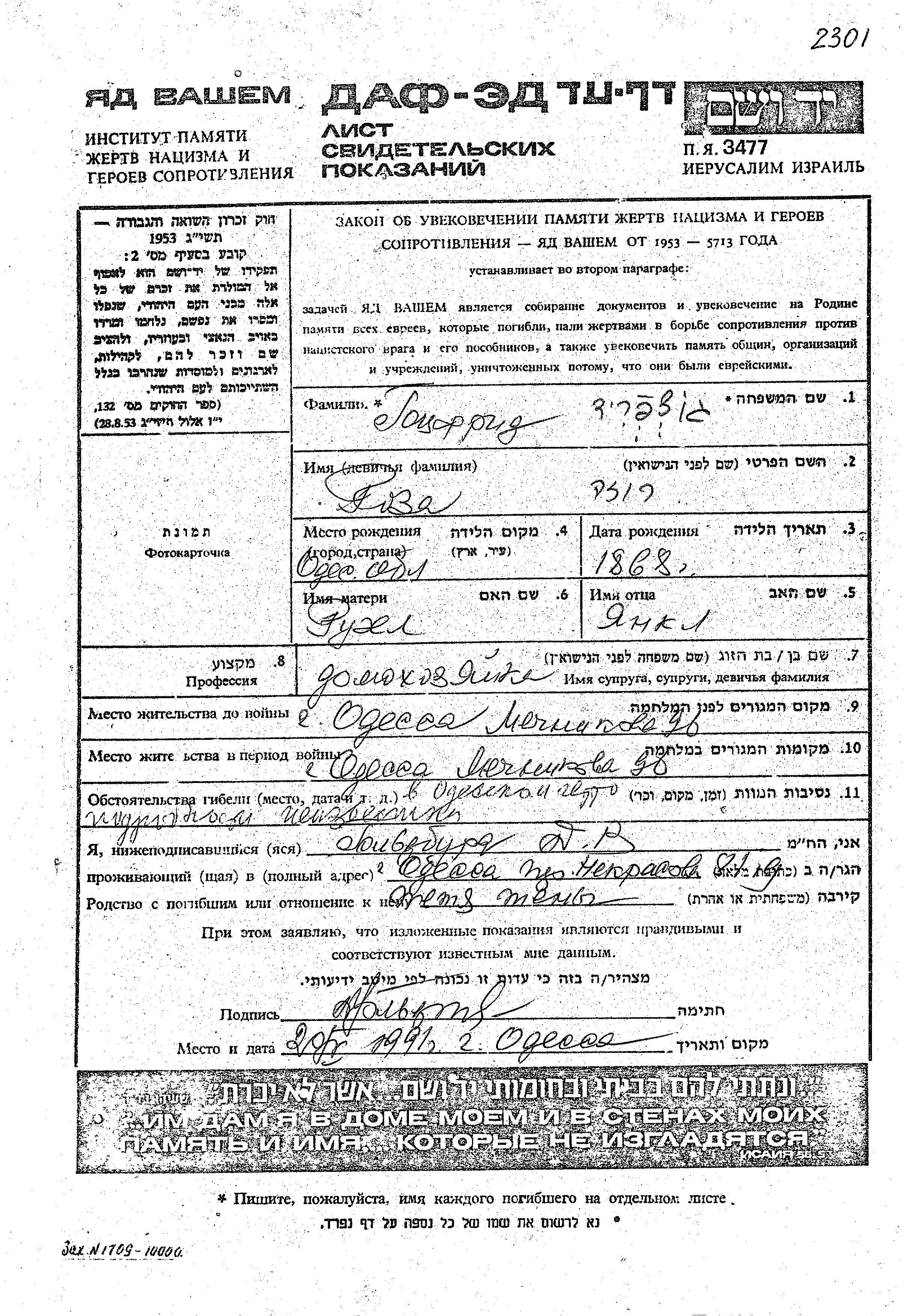 Yad Vashem - Pages of Testimony Names Memorial Collection