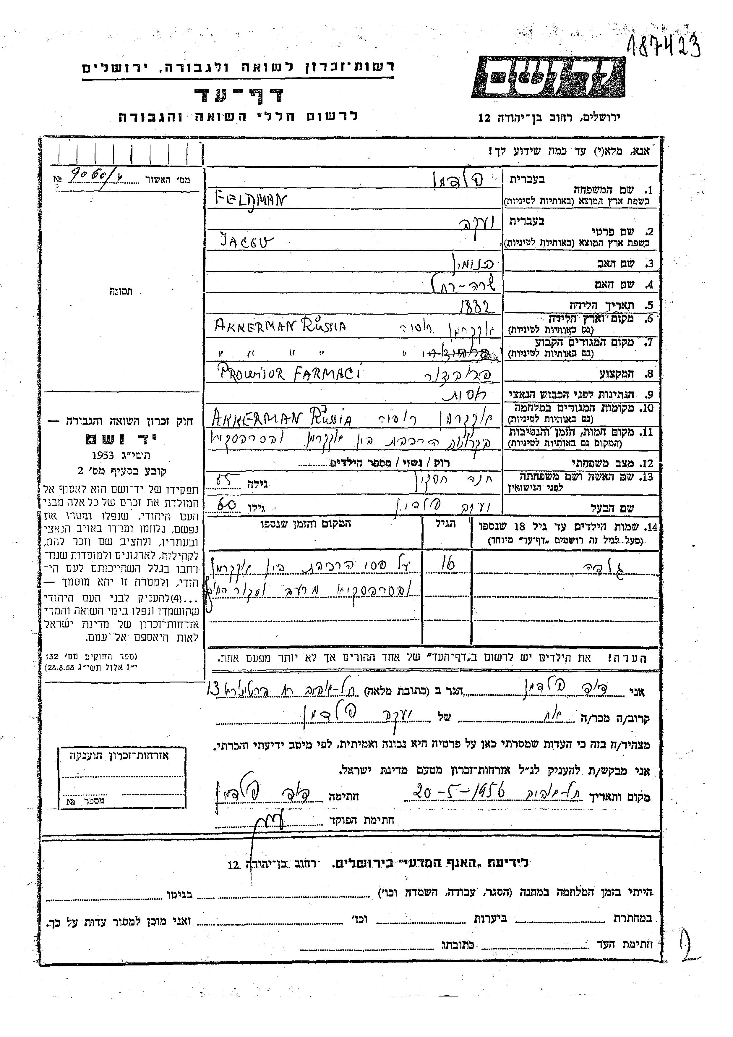 Yad Vashem - Pages of Testimony Names Memorial Collection