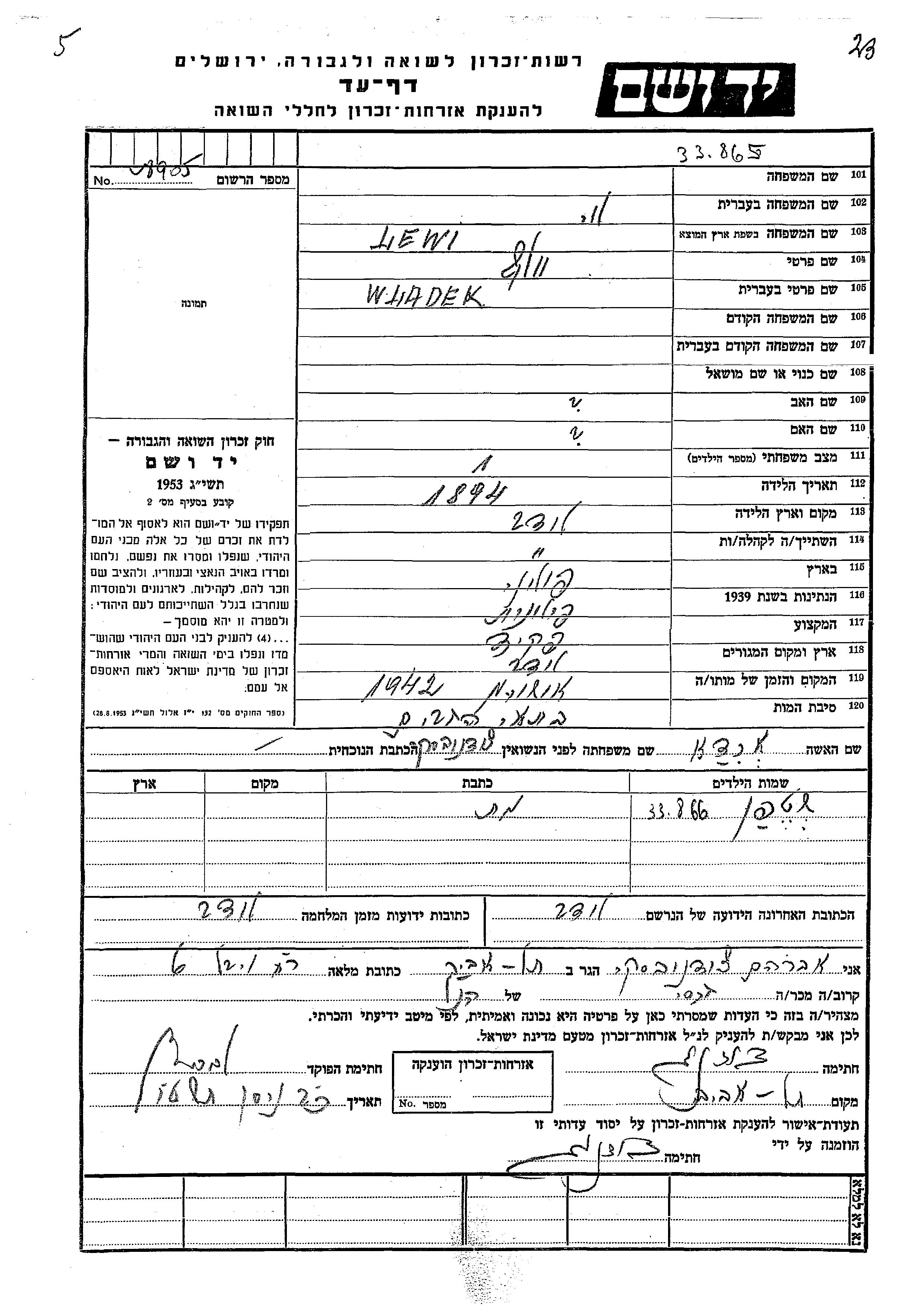 Yad Vashem - Pages of Testimony Names Memorial Collection