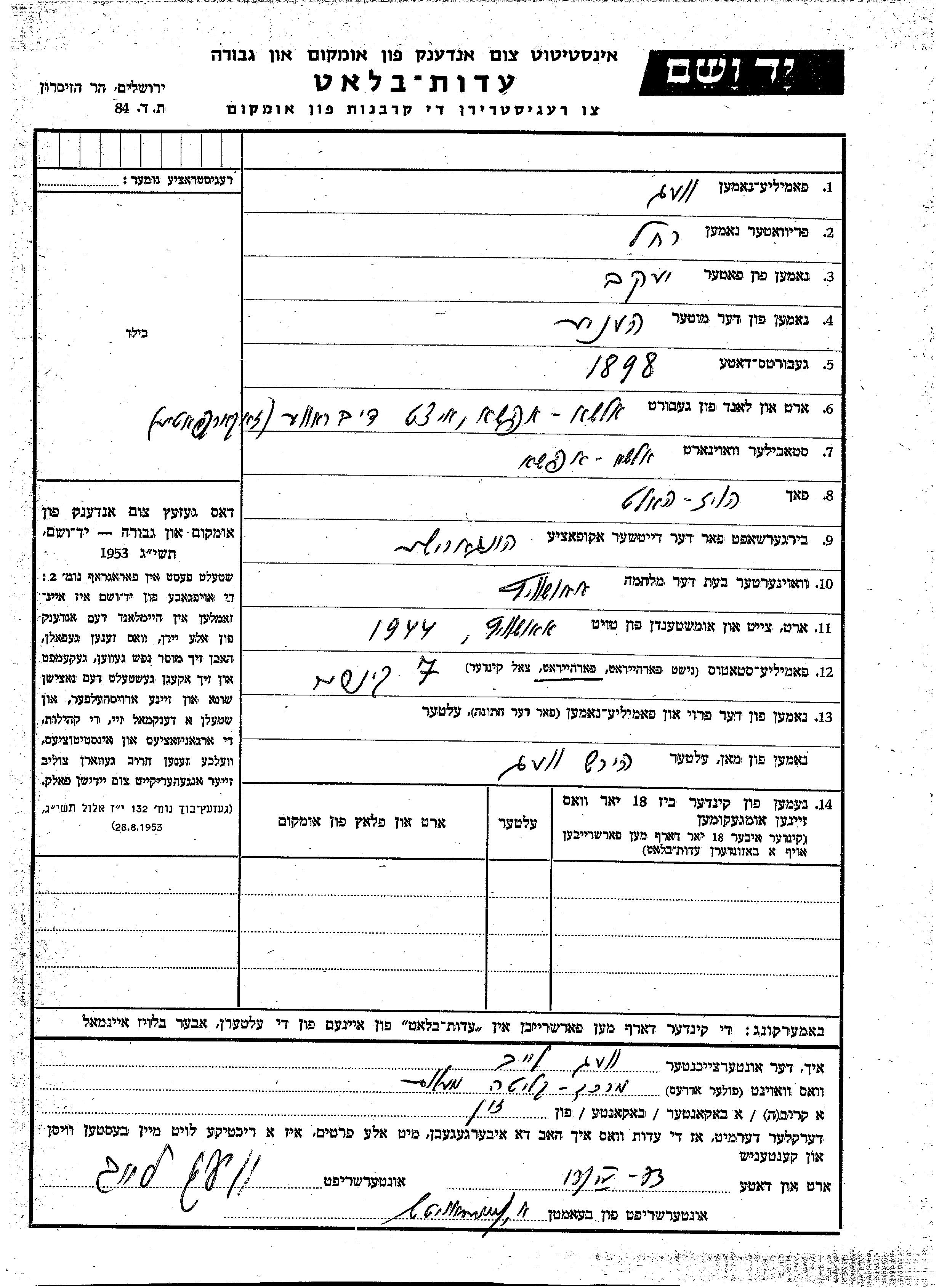 Yad Vashem - Pages of Testimony Names Memorial Collection
