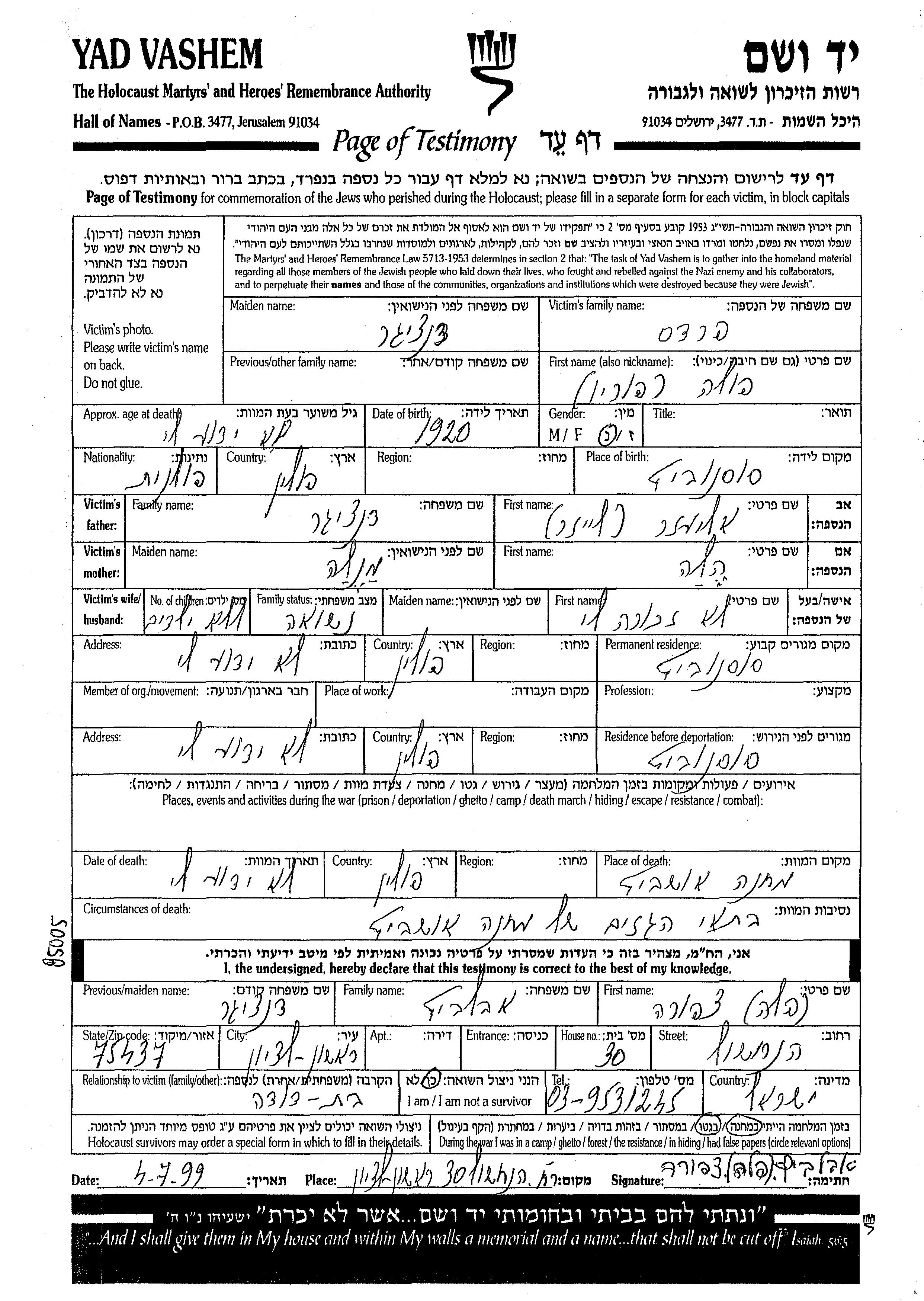 Yad Vashem - Pages of Testimony Names Memorial Collection
