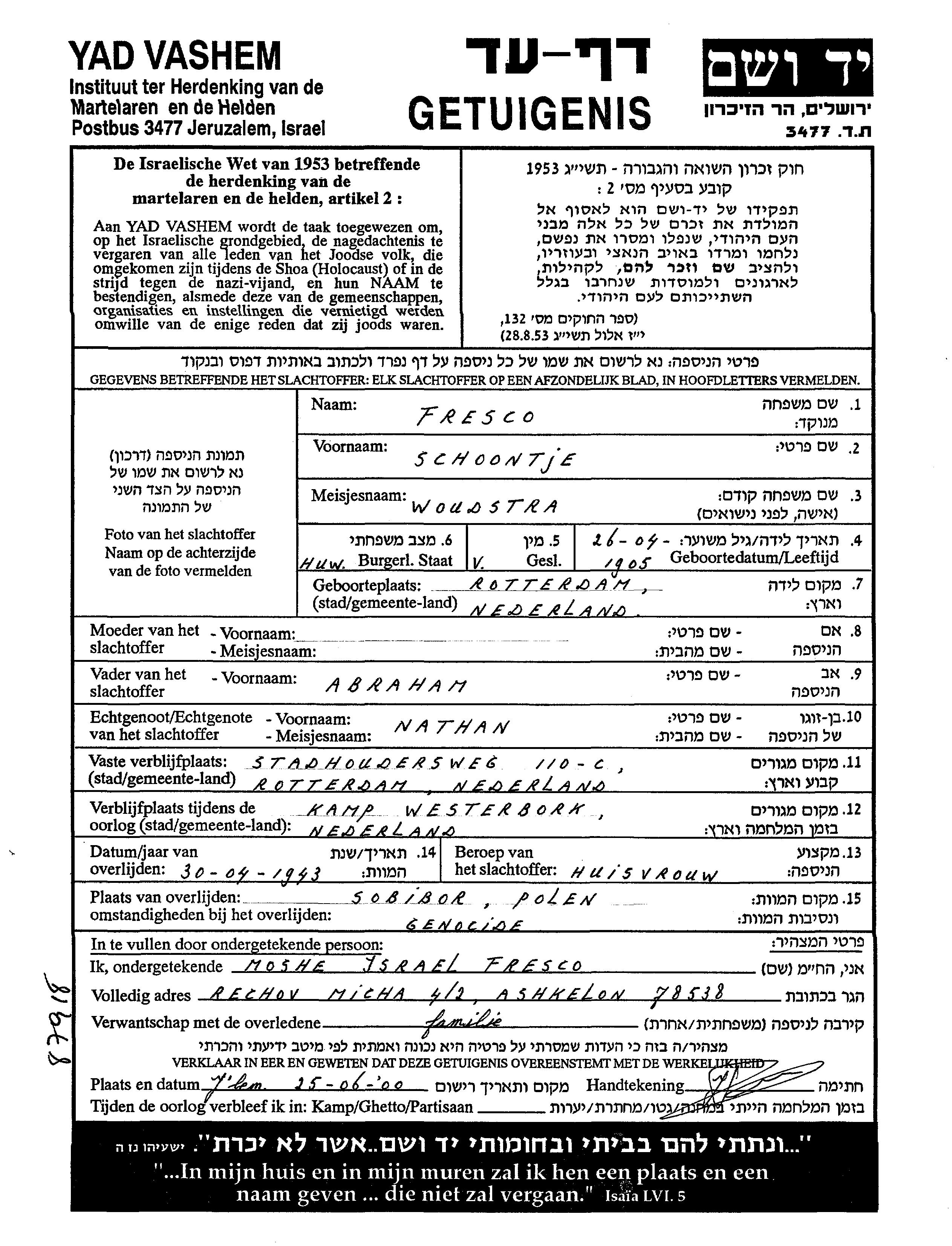 Fresco | Schoontje | 1905 | Rotterdam, Pays-Bas | Feuille de témoignage |