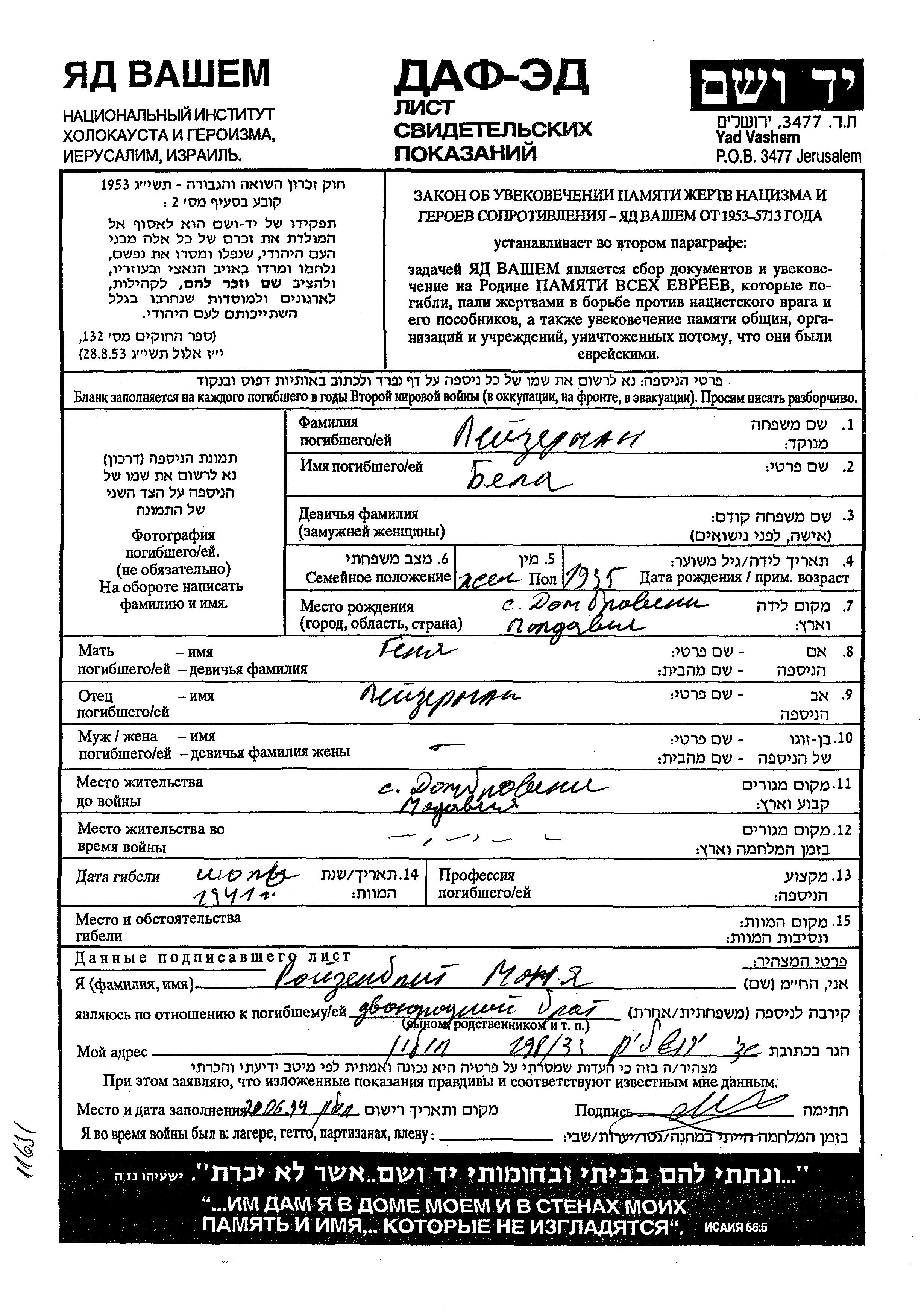 Yad Vashem - Pages of Testimony Names Memorial Collection