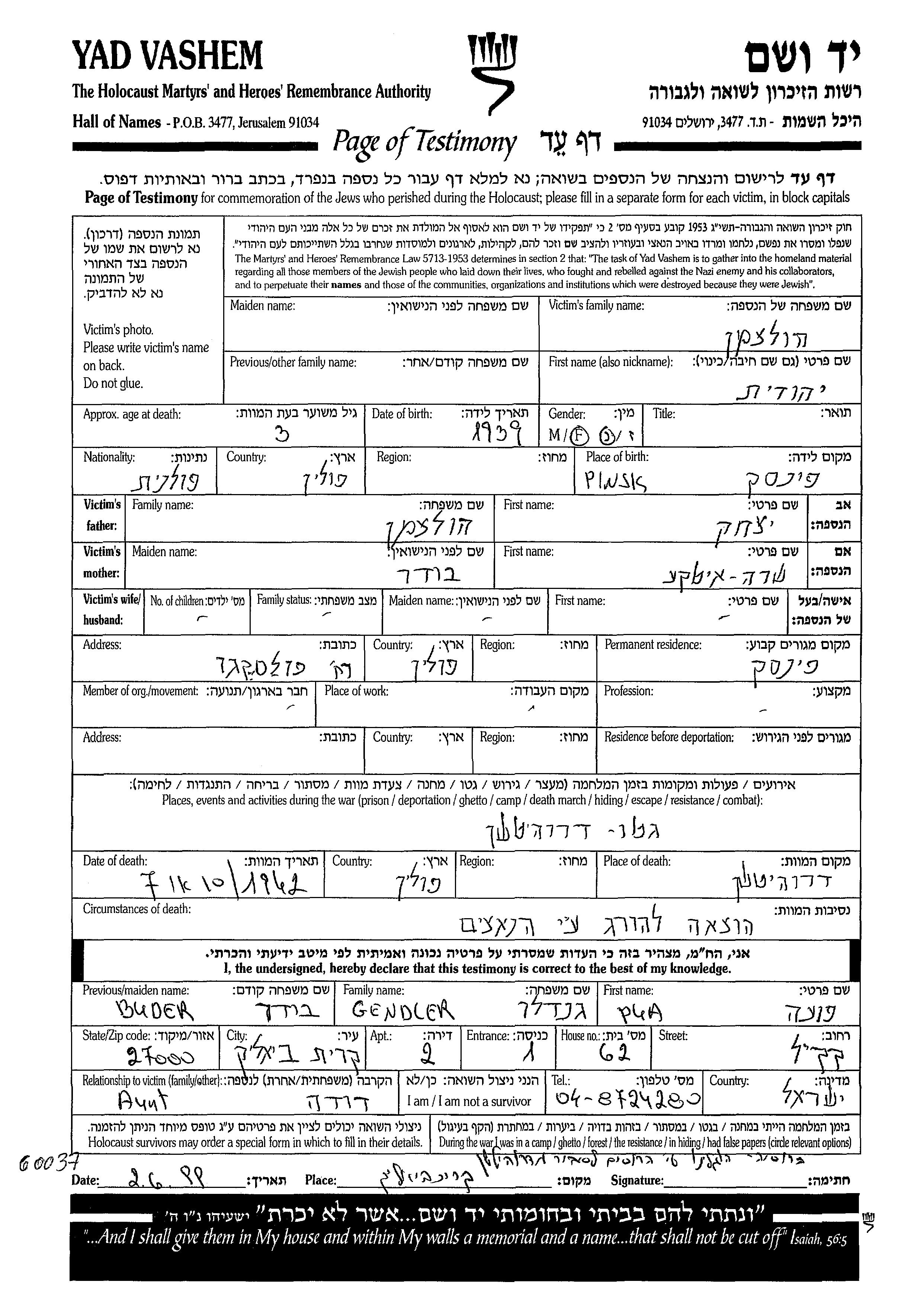 Yad Vashem - Pages of Testimony Names Memorial Collection