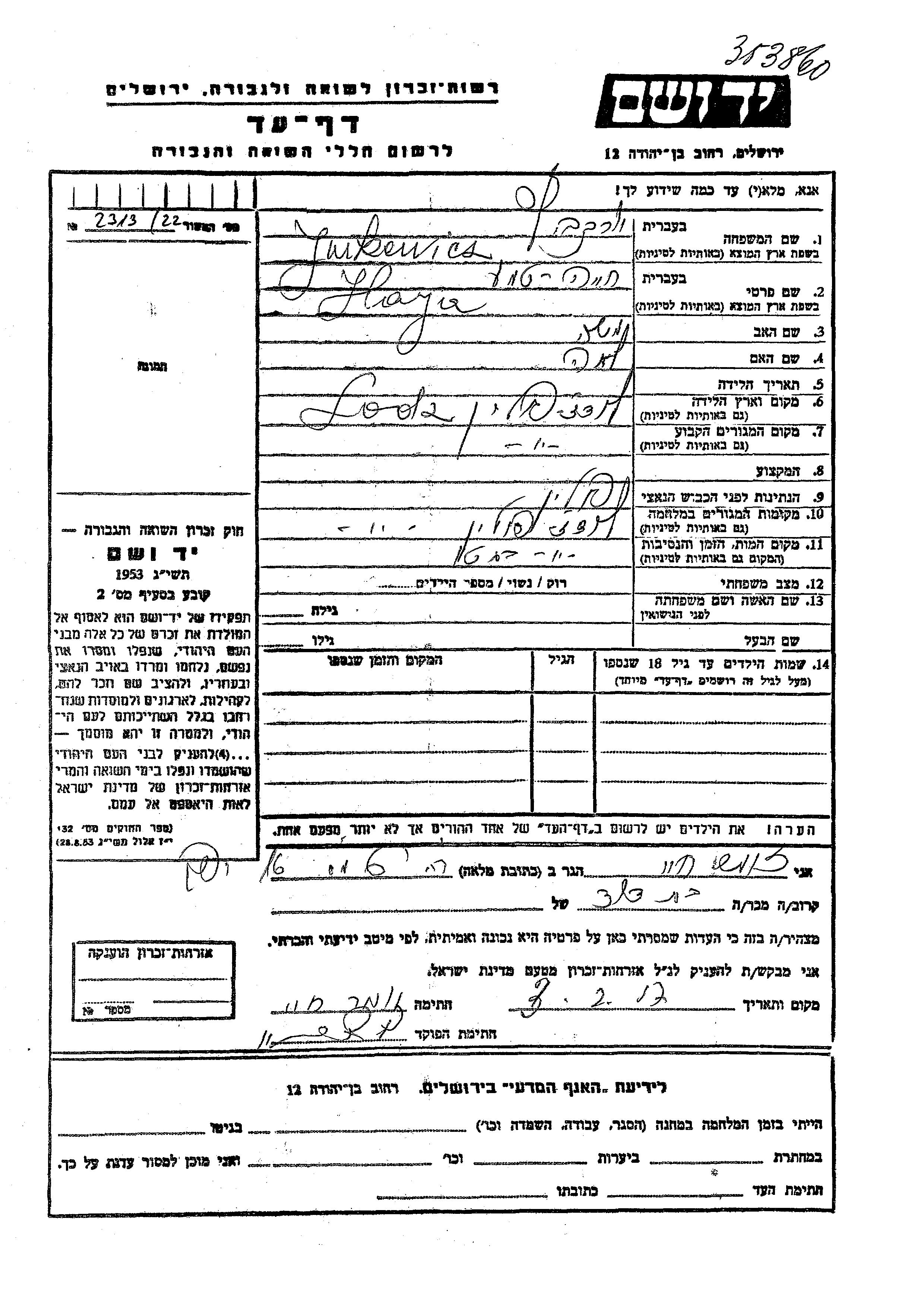 Yad Vashem - Pages of Testimony Names Memorial Collection