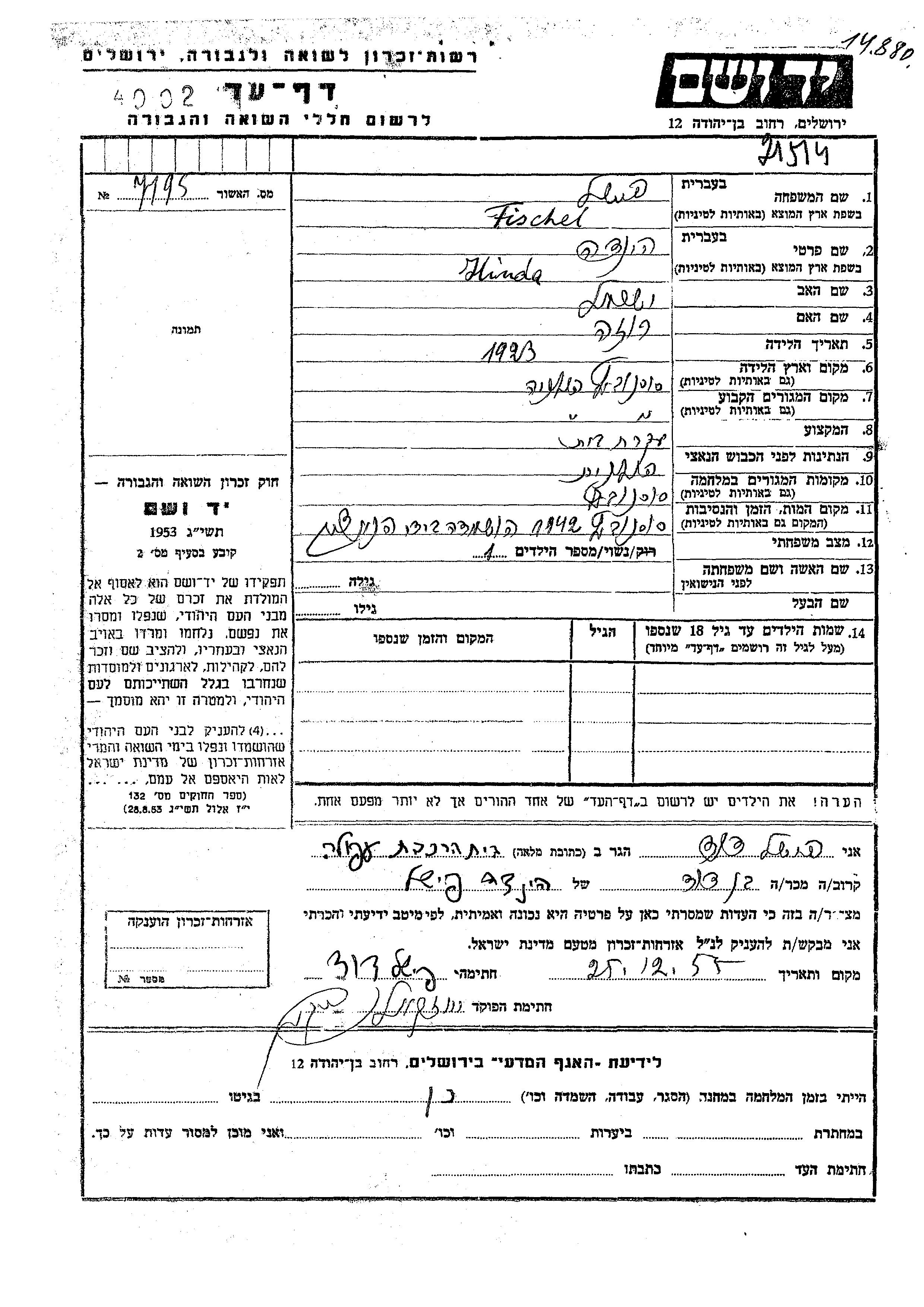 Yad Vashem - Pages of Testimony Names Memorial Collection