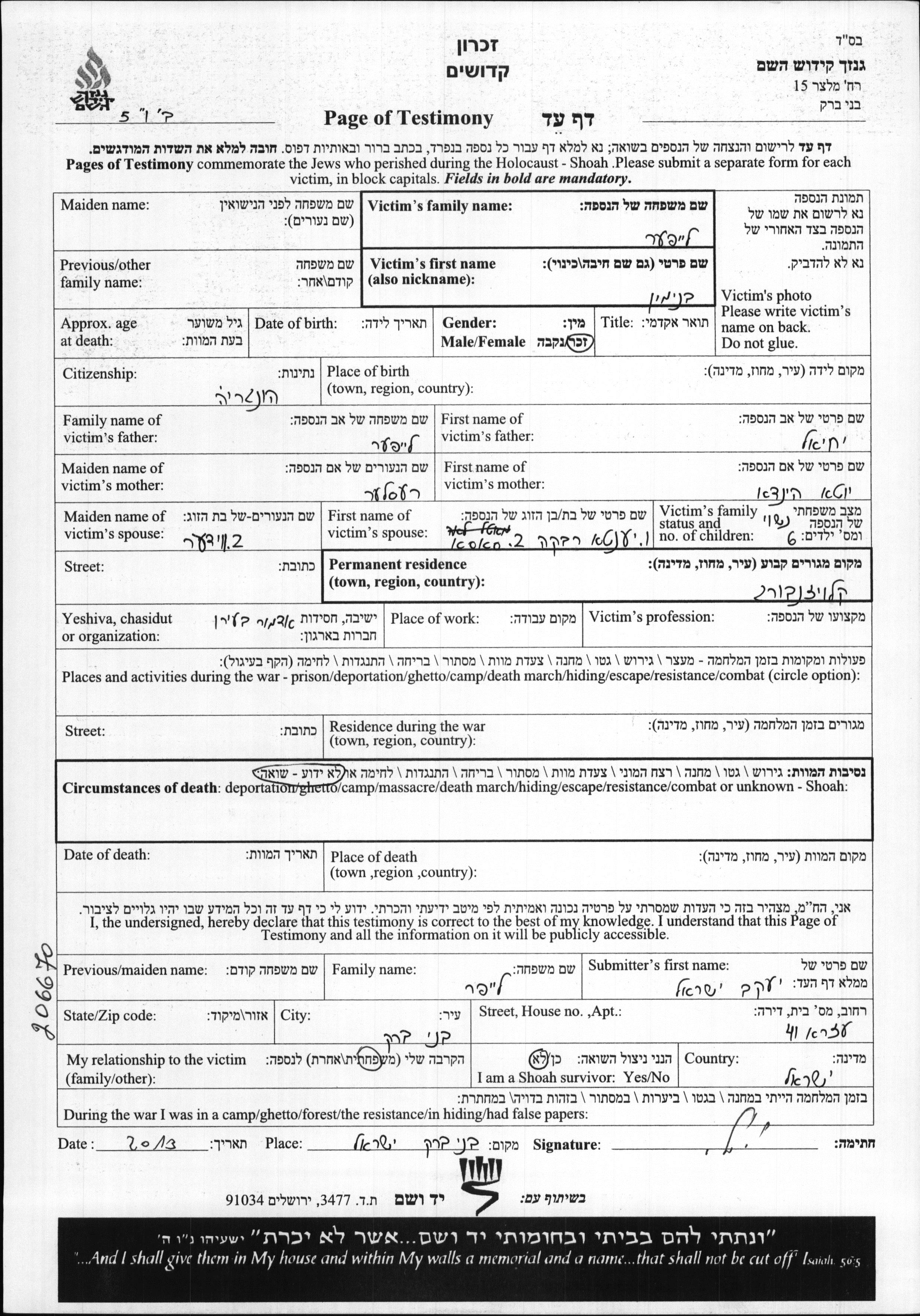 Yad Vashem - Pages of Testimony Names Memorial Collection